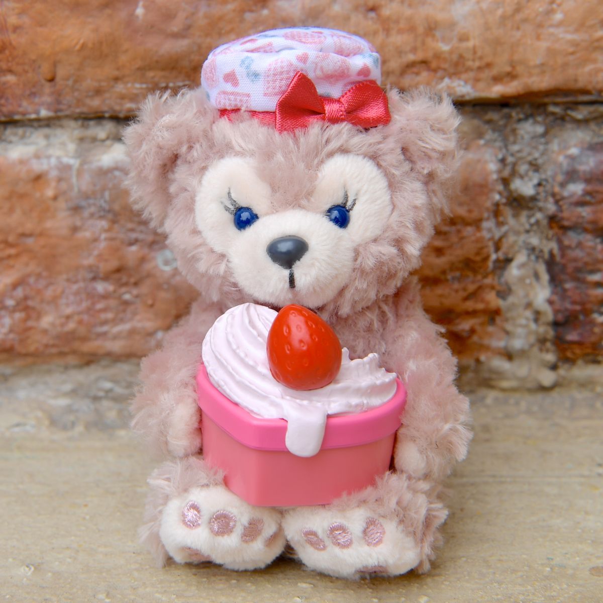 たっぷりのクリームをもったシェリーメイのぬいぐるみストラップ。