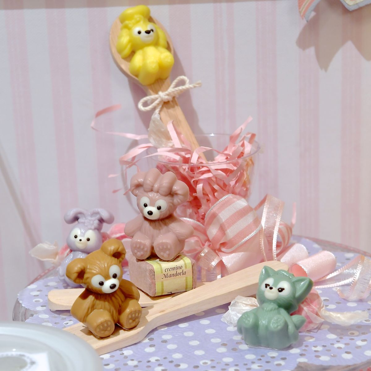 カラフルでかわいいおすわり姿のダッフィーたちのチョコレートが入っています。