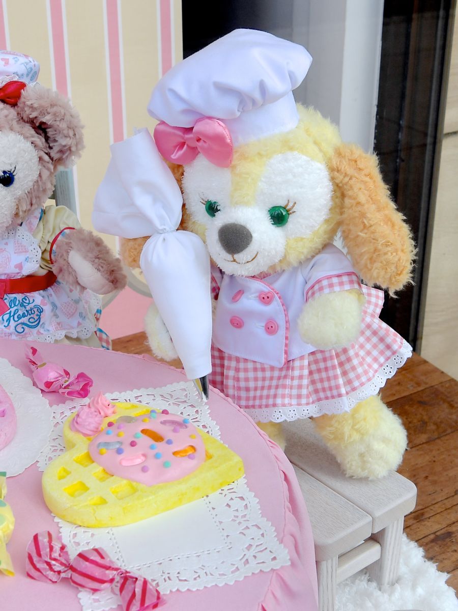 ワッフルづくりにぴったりなパティシエ風コスチュームがかわいいダッフィーたちのコスチューム。