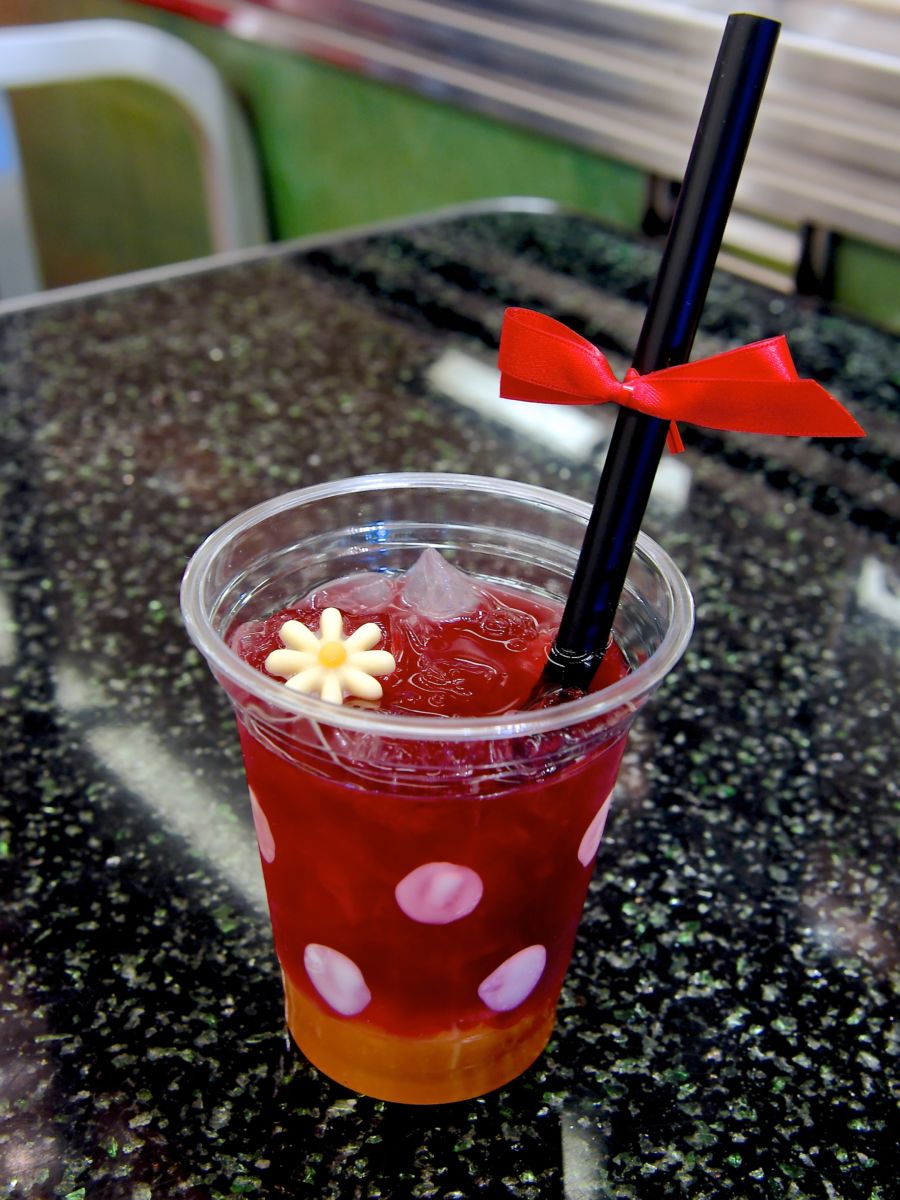 “ベリー・ベリー・ミニー!”スペシャルドリンクはドット柄のカップとストローにはかわいいリボン付き☆