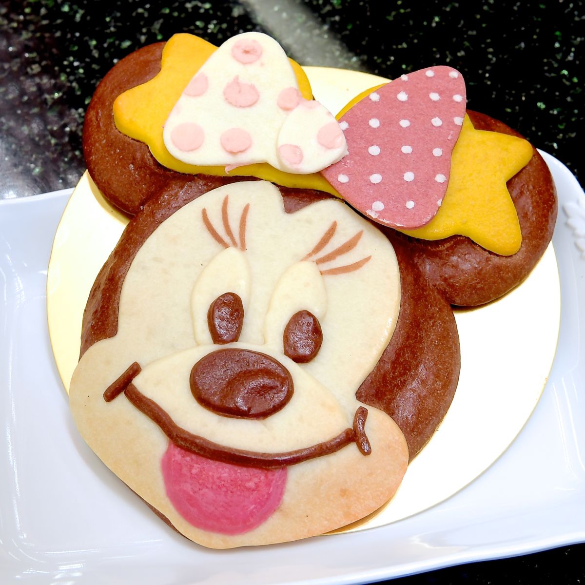 「ミニーマウス」のお顔型ブレッド。