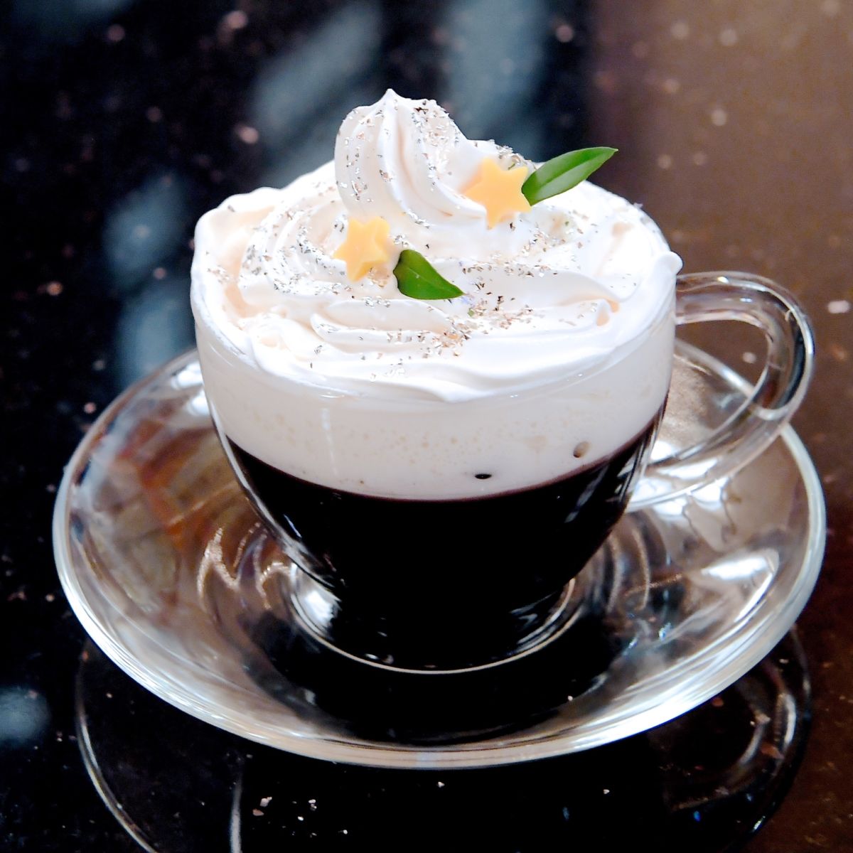 ココアをベースにチョコレートシロップ、パッションフルーツシロップ、ラズベリーシロップを加えた甘いチョコレートドリンクです。