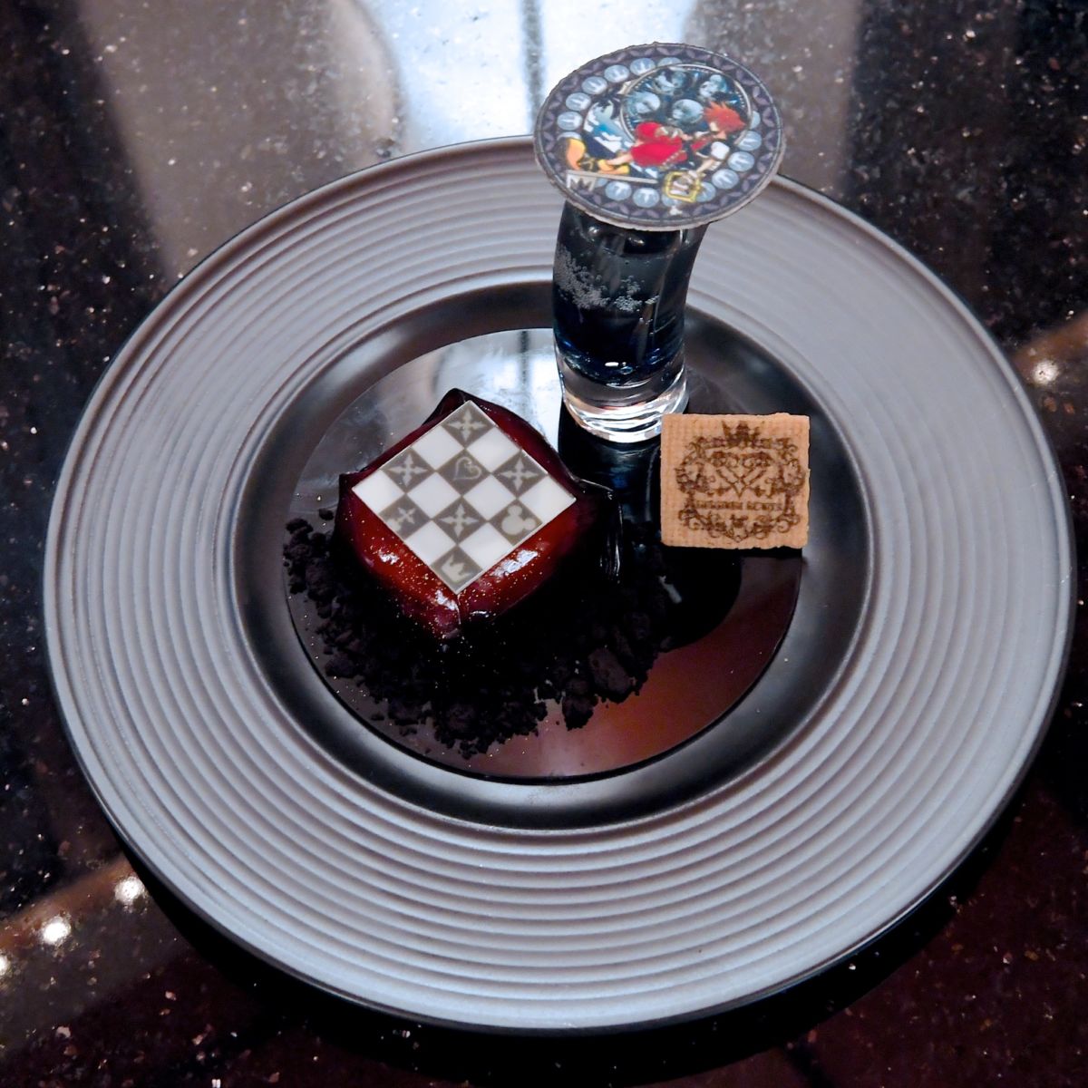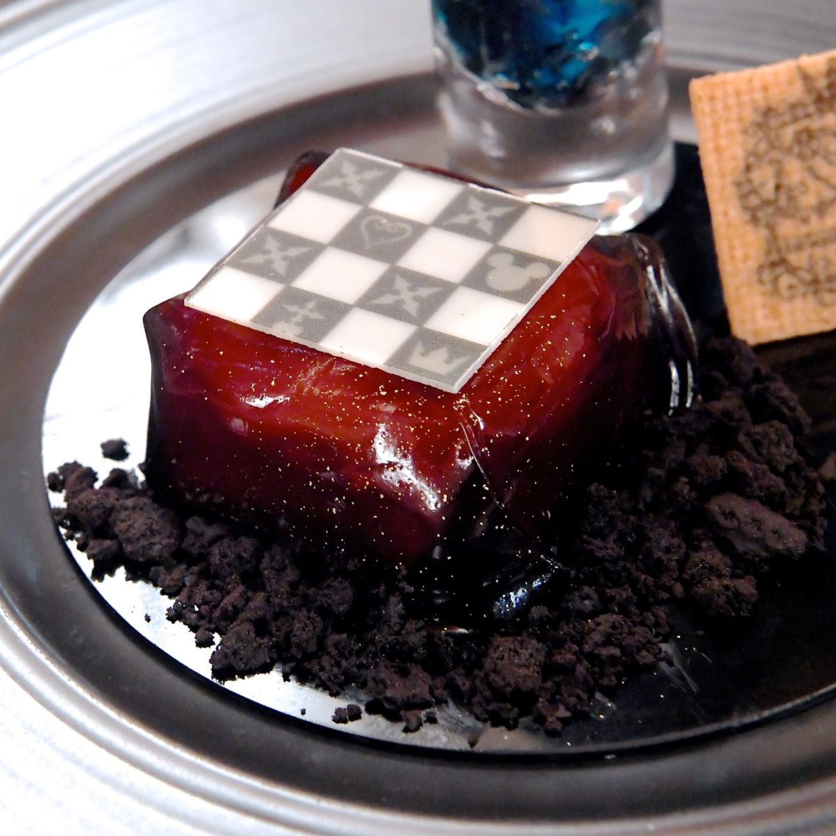 「キングダムハーツ」シリーズに登場するステンドグラスやチェス盤がデコレーションされたデザート。