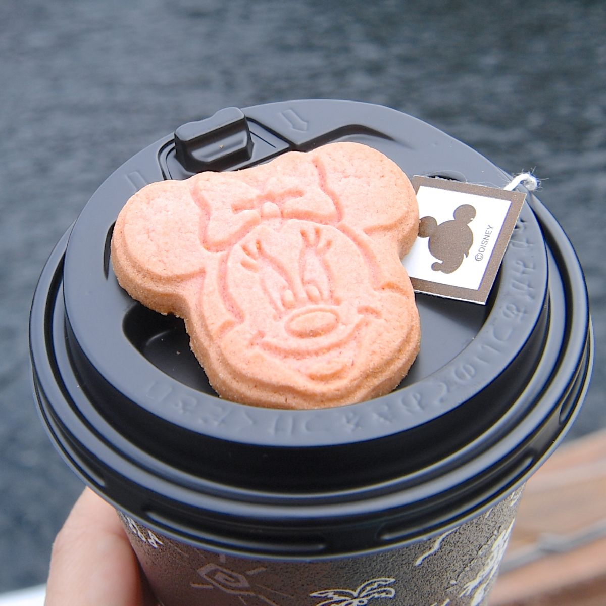 ドリンクにミニーマウスのお顔型クッキーをトッピング、または無料でサイズアップ。