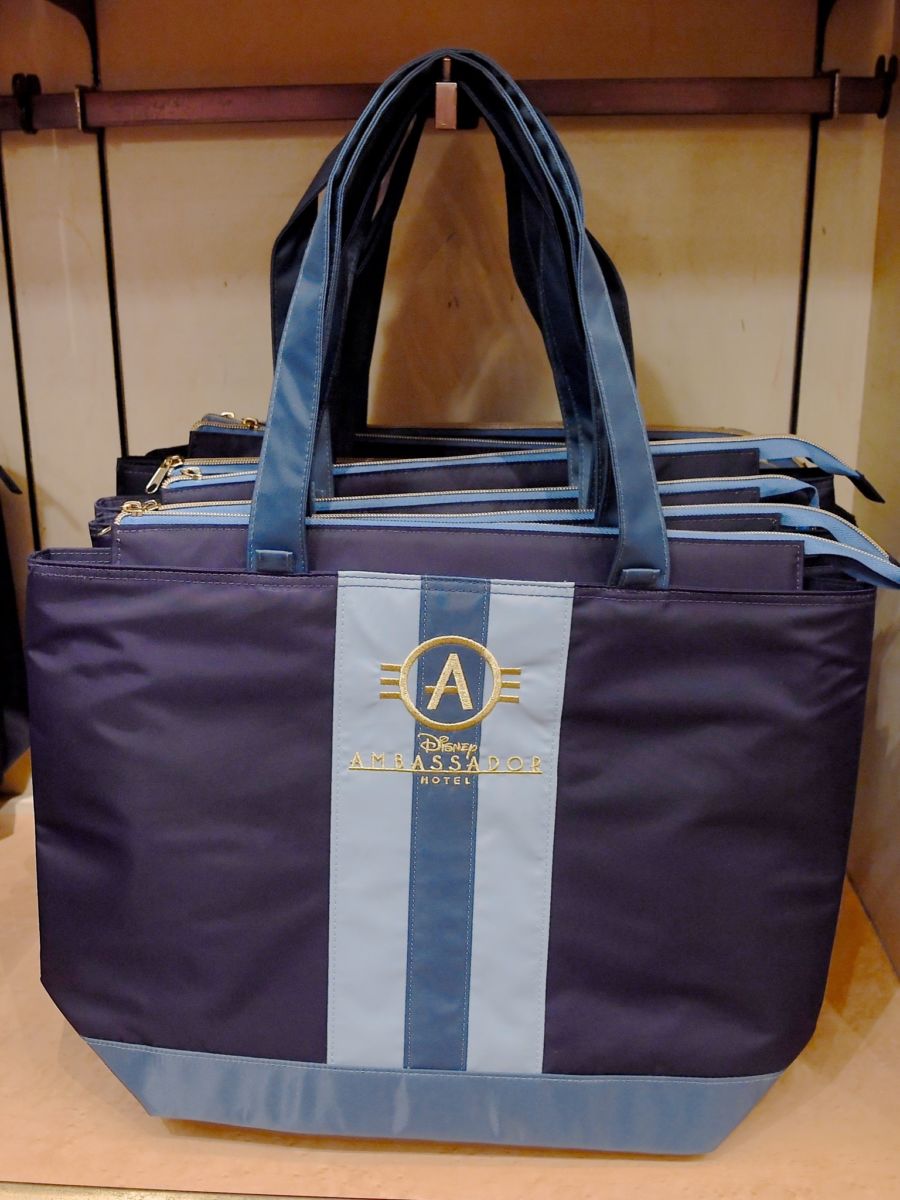 ディズニーアンバサダーホテルのロゴが入ったブルーを基調としたトートバッグ。