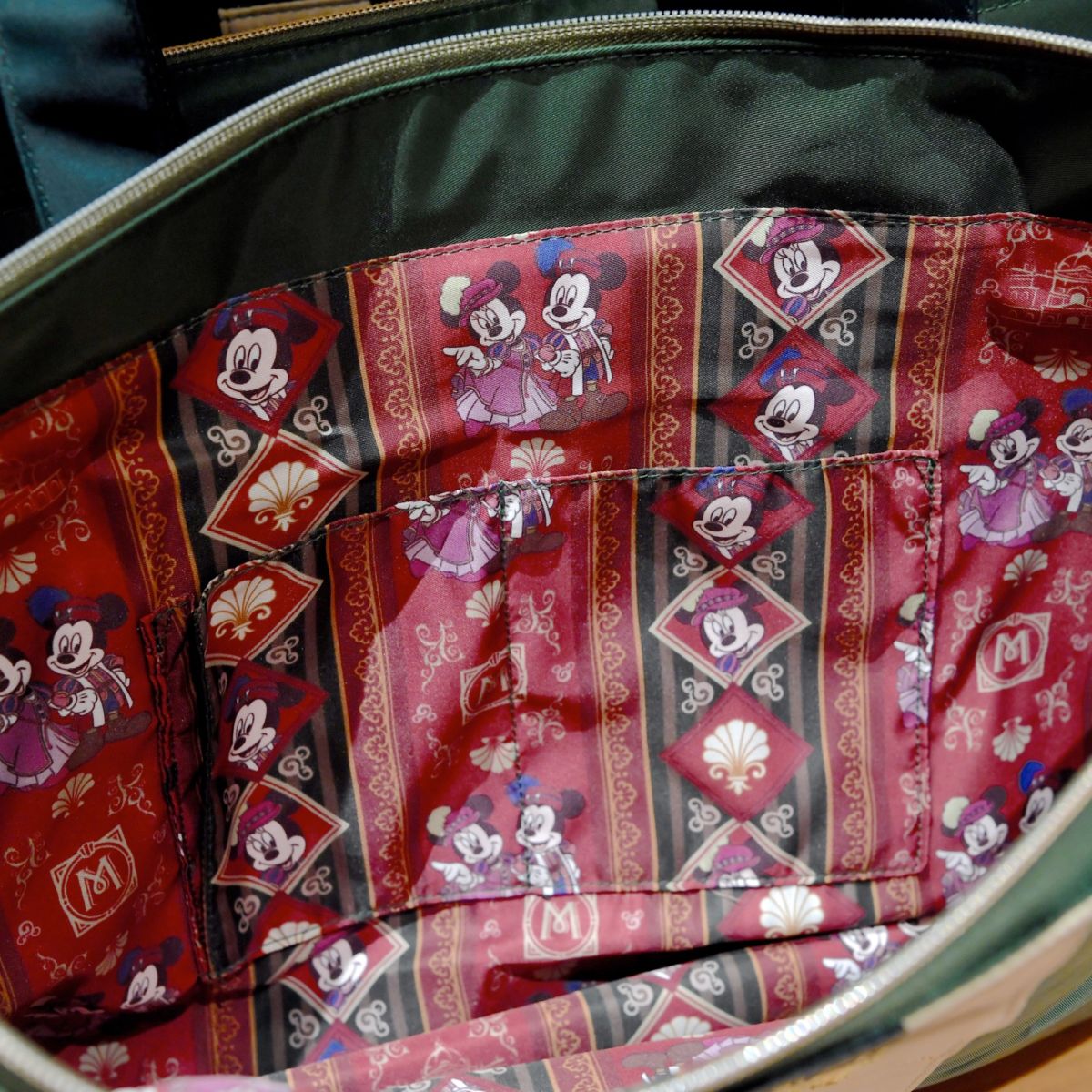 内側はミッキーマウス、ミニーマウス、東京ディズニーランドホテルの総柄です。