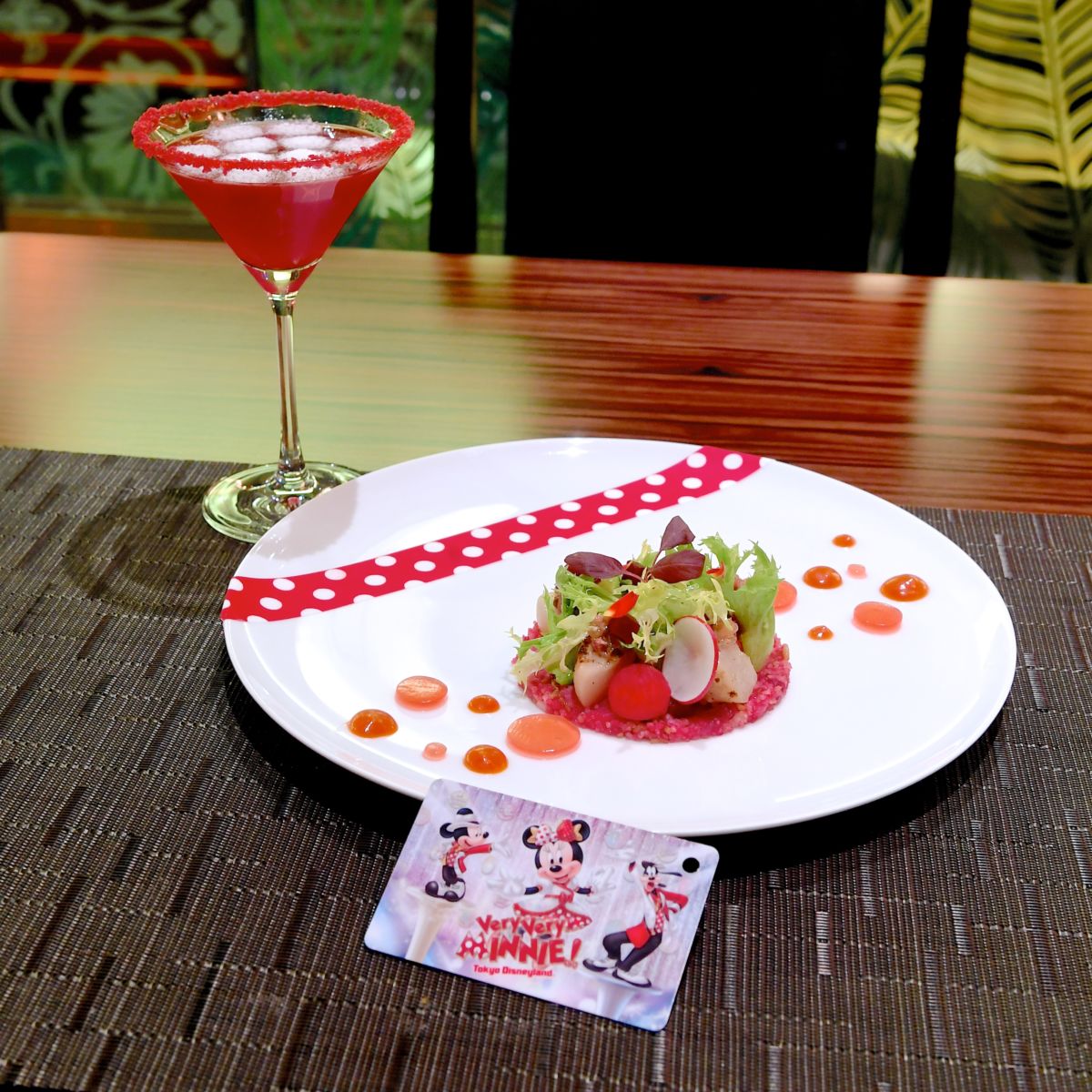 「カンナ」ではミニーマウスモチーフのドット柄があしらわれたオシャレでかわいいコースメニューが提供されています。