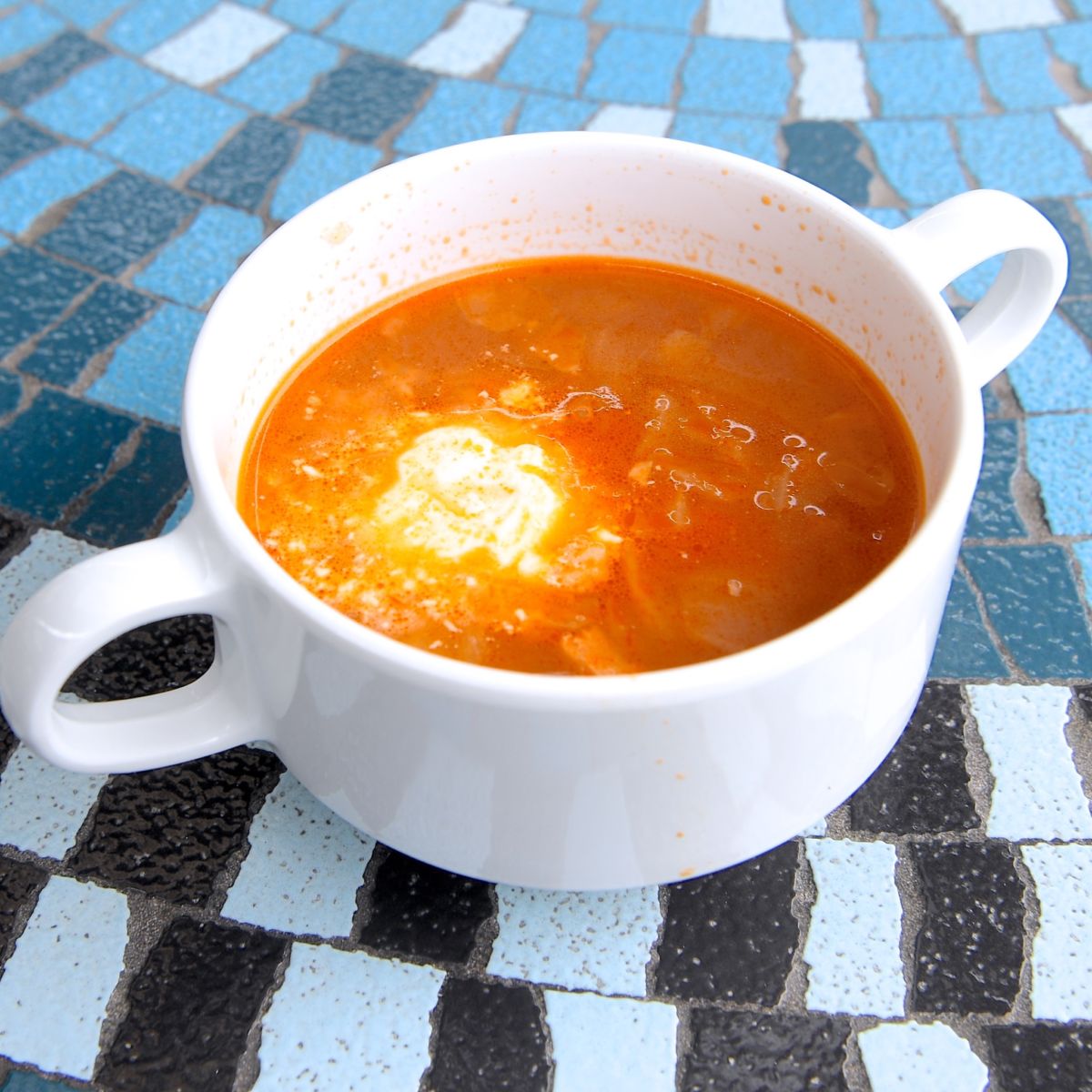 ミネストローネ、サワークリームトッピング