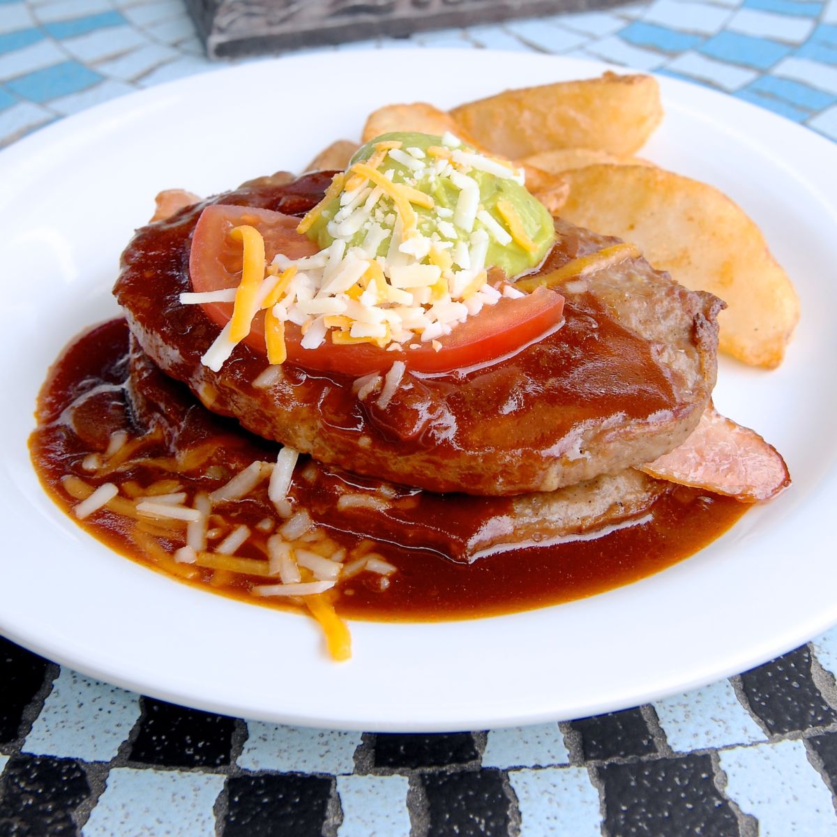 - ダブルハンバーグプレート(ベーコンチーズハンバーグ、フライドポテト)