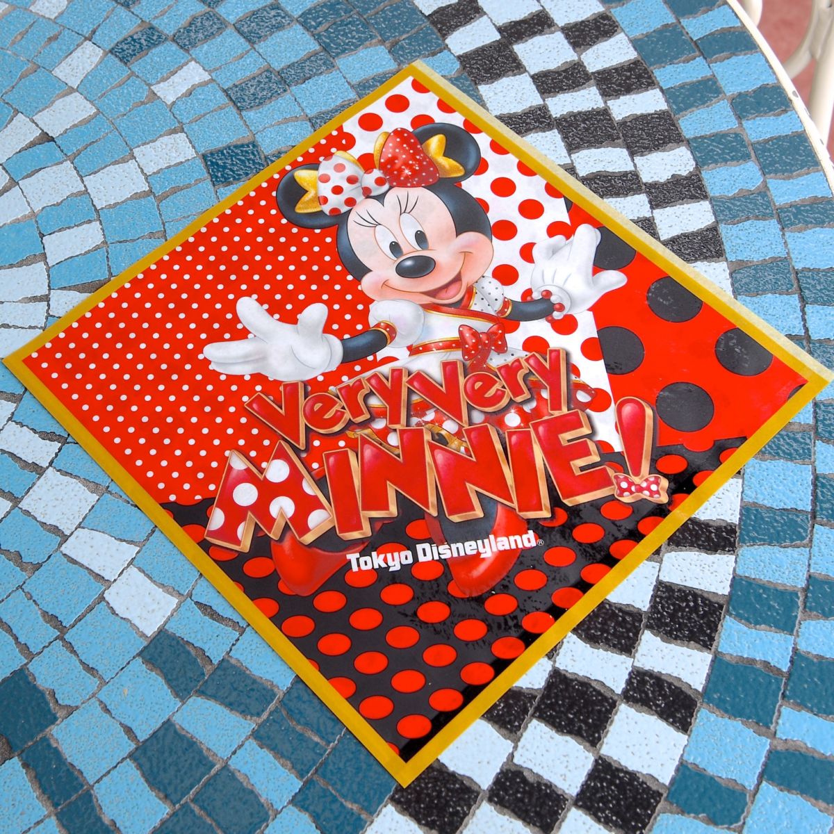 赤、白、黒のドット柄にミニーマウスが描かれています。