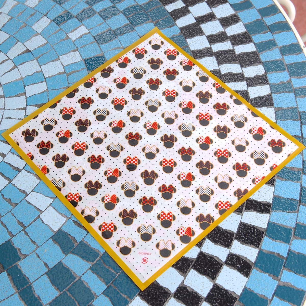 裏面はドット柄のリボンを付けたミニーアイコンです。