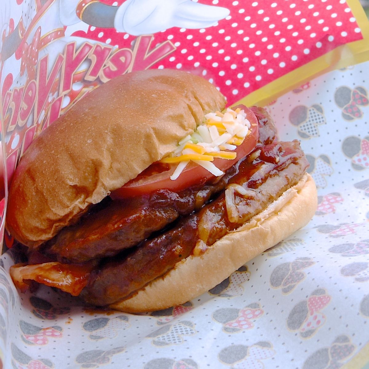ハンバーガーを包める包み紙も”ベリー・ベリー・ミニー!”デザイン。