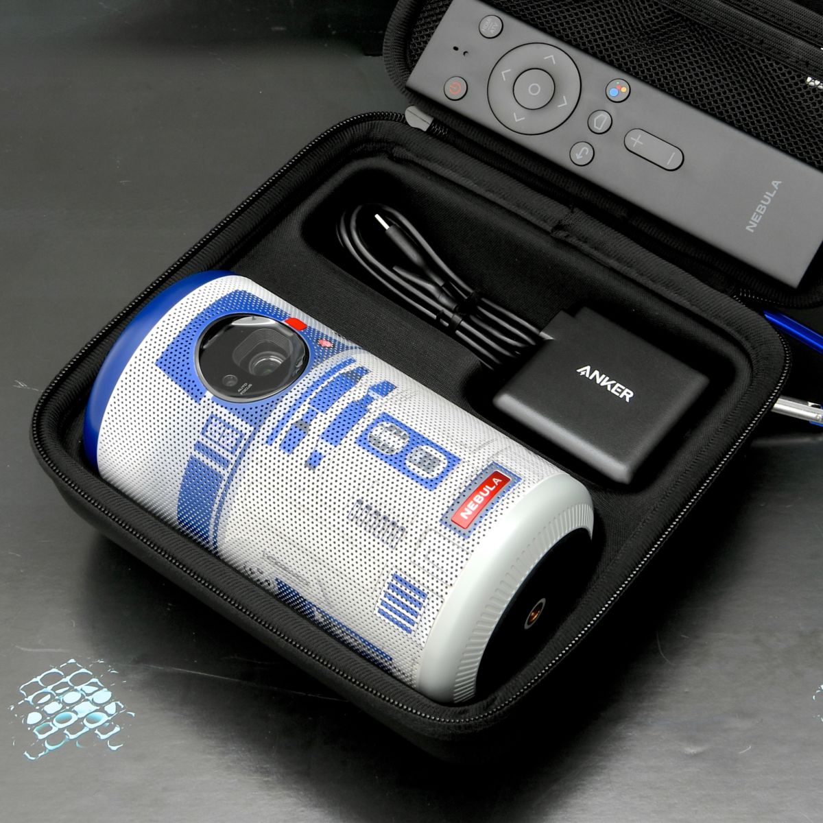 セット内容:Anker Nebula Capsule ll R2-D2™ Edition、Power Delivery 対応USB充電器、リモコン、シリアルナンバー付きオリジナルトラベルケース、クイックスタートガイド、オリジナルポストカード