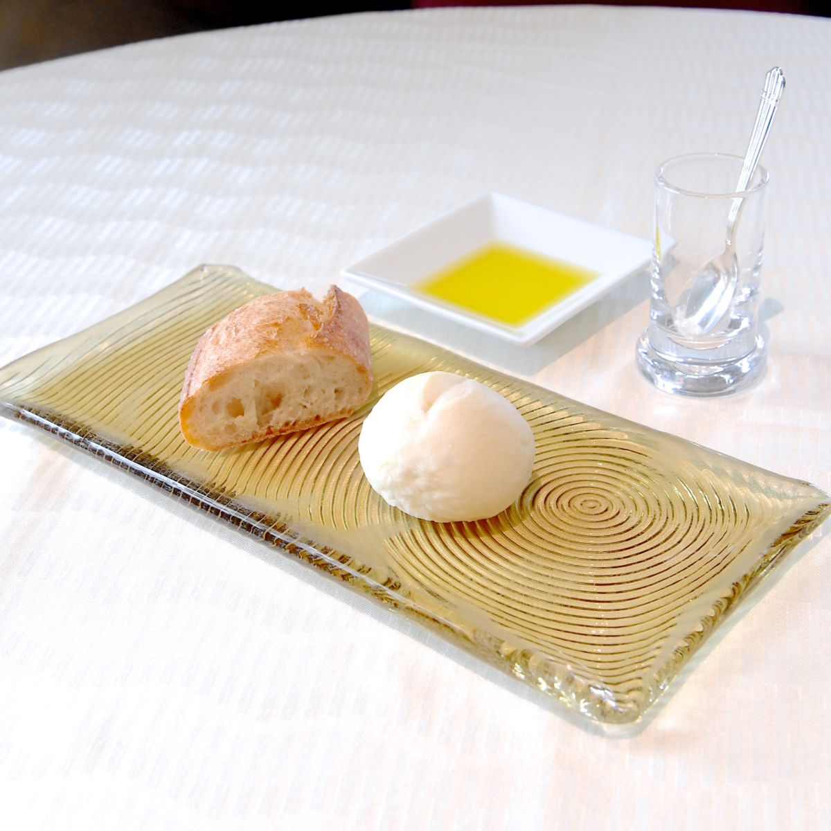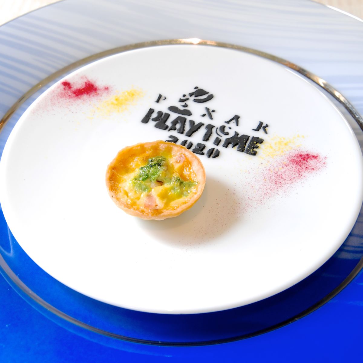 はじめに提供されるのは、サクッと美味しい一口サイズの菜の花とベーコンのキッシュ。