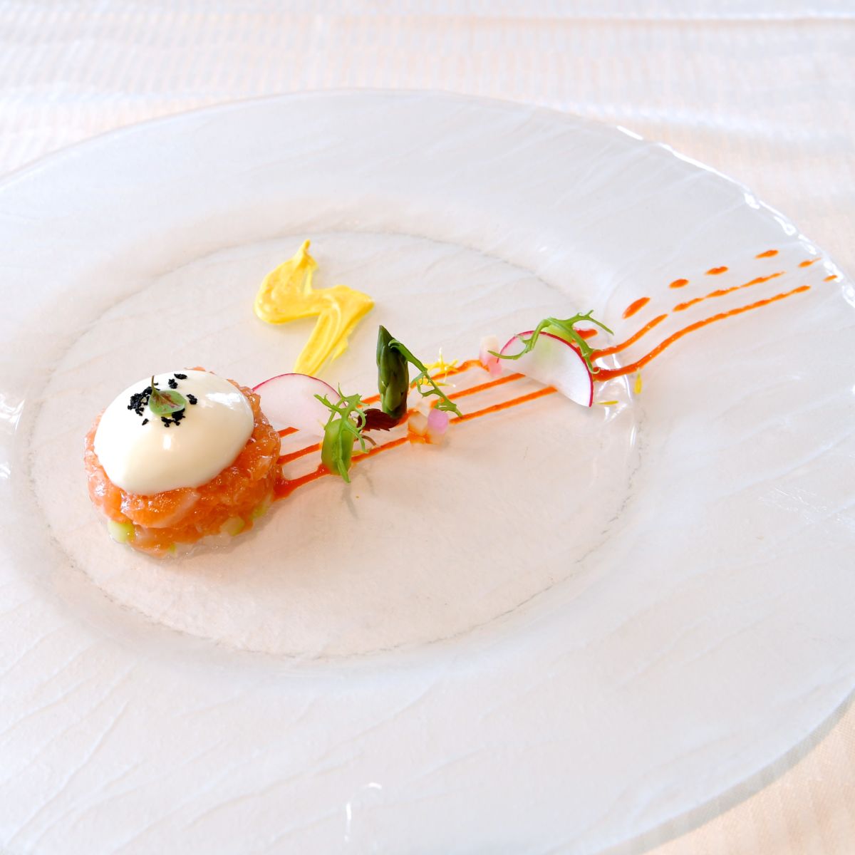 前菜は、サーモンと紅ズワイガニのタルタル。