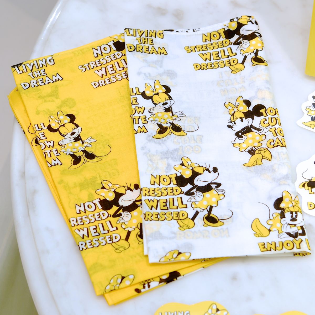 ミニーマウス総柄のバンダナはイエロー/ホワイトの2色展開です☆
