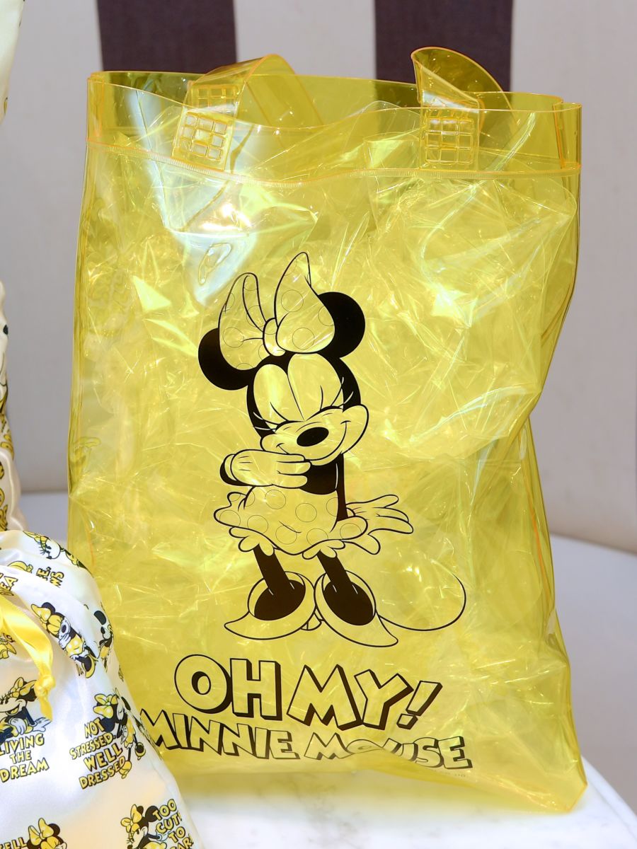 OH MY! MINNIE MOUSEのロゴとミニーマウスがデザインされたクリアバッグ。