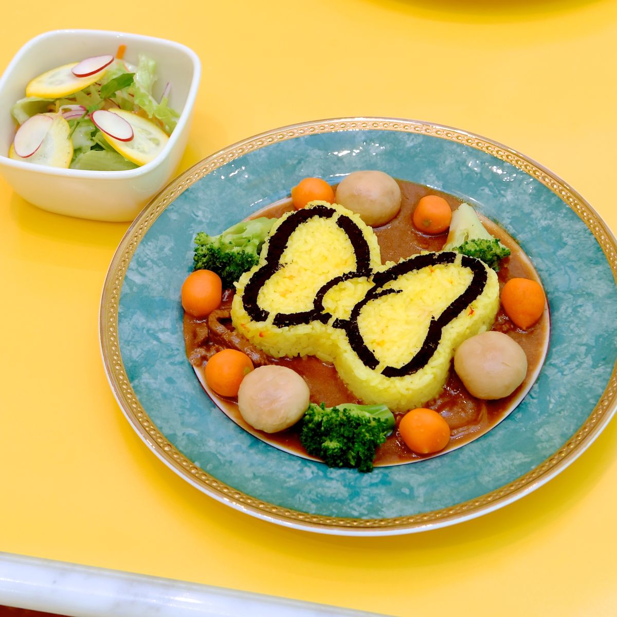 ミニーマウスのイエローのリボンをモチーフにしたライスがかわいいハッシュドビーフ。