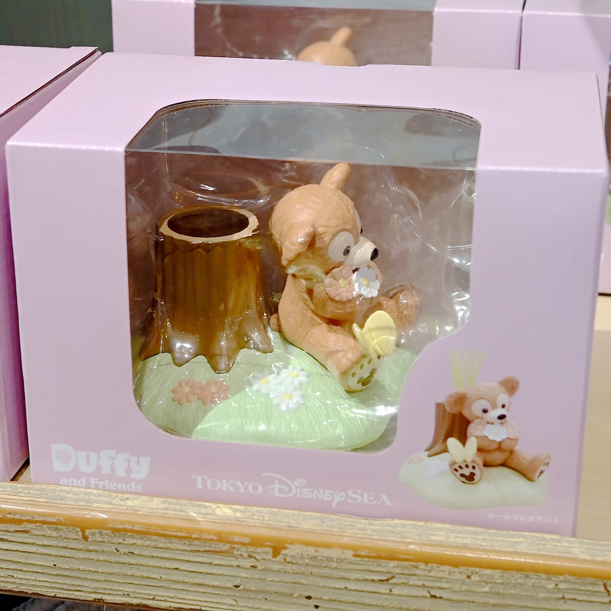 お花を持っておすわりしたダッフィーがかわいいルームフレグランス。