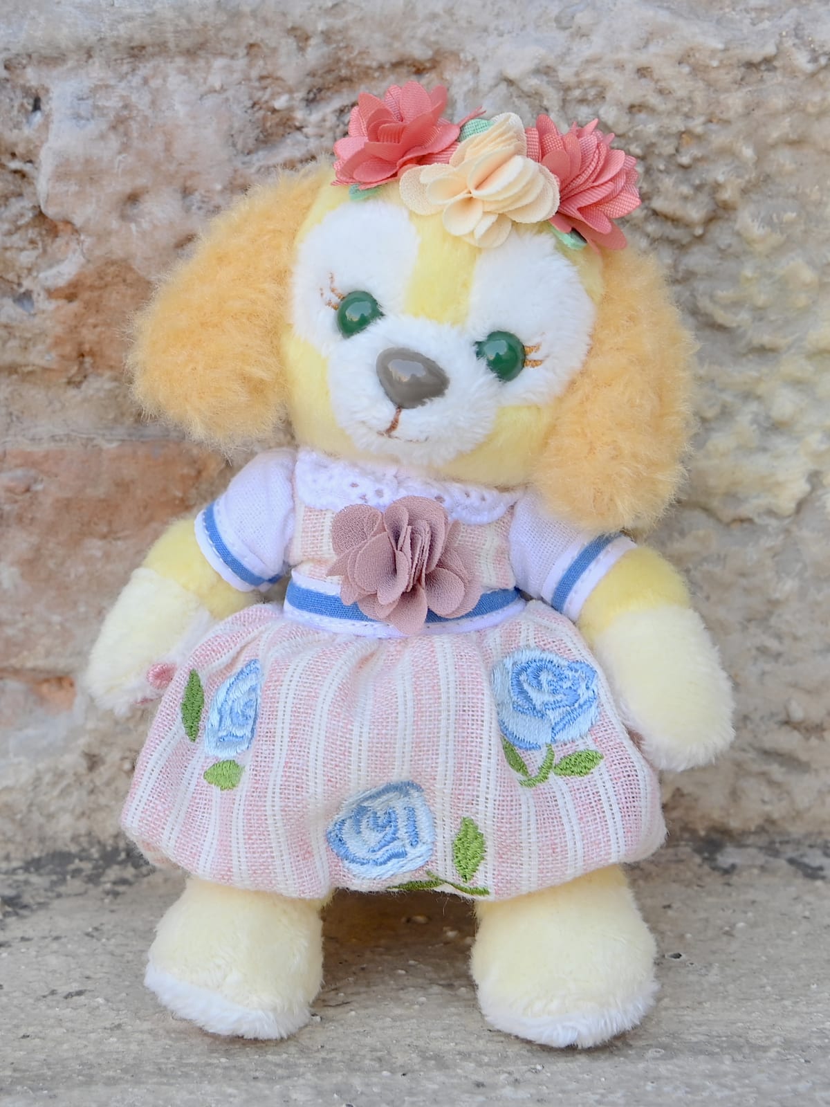 春のお散歩につれていきたいダッフィーのぬいぐるみバッジ。