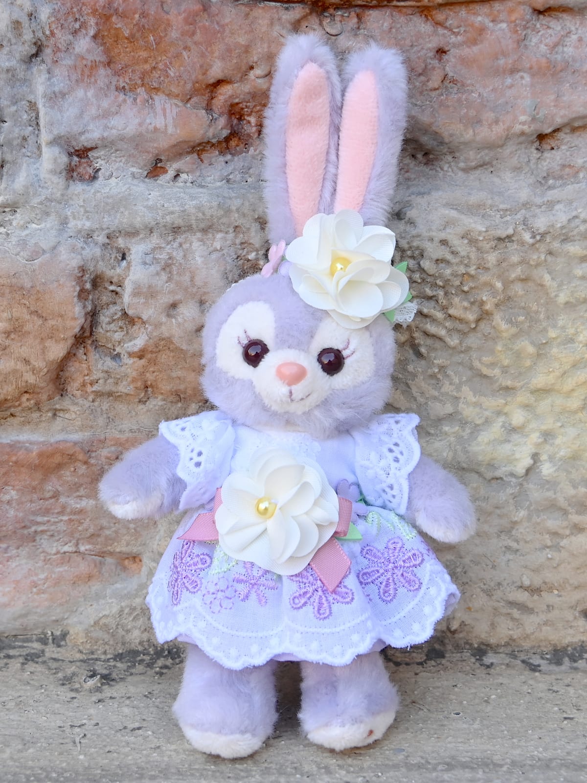お花とレースデザインがかわいいステラ・ルーのぬいぐるみバッジ。