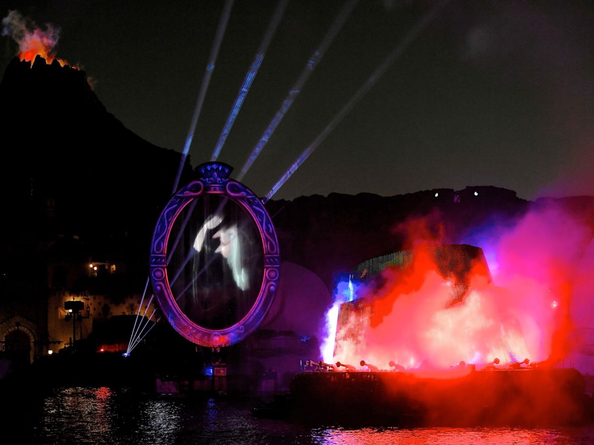 夜のメディテレーニアンハーバーを舞台に、魔法使いの弟子となったミッキーがイマジネーションの力を信じてディズニーファンタジーの世界を創造していくナイトエンターテイメントです。
