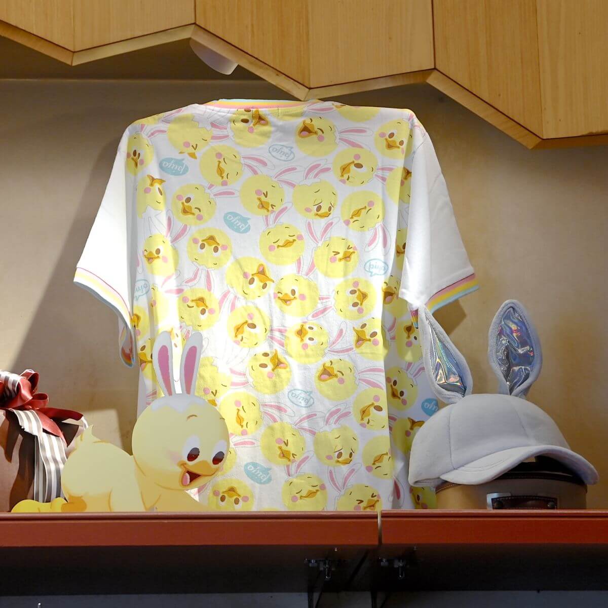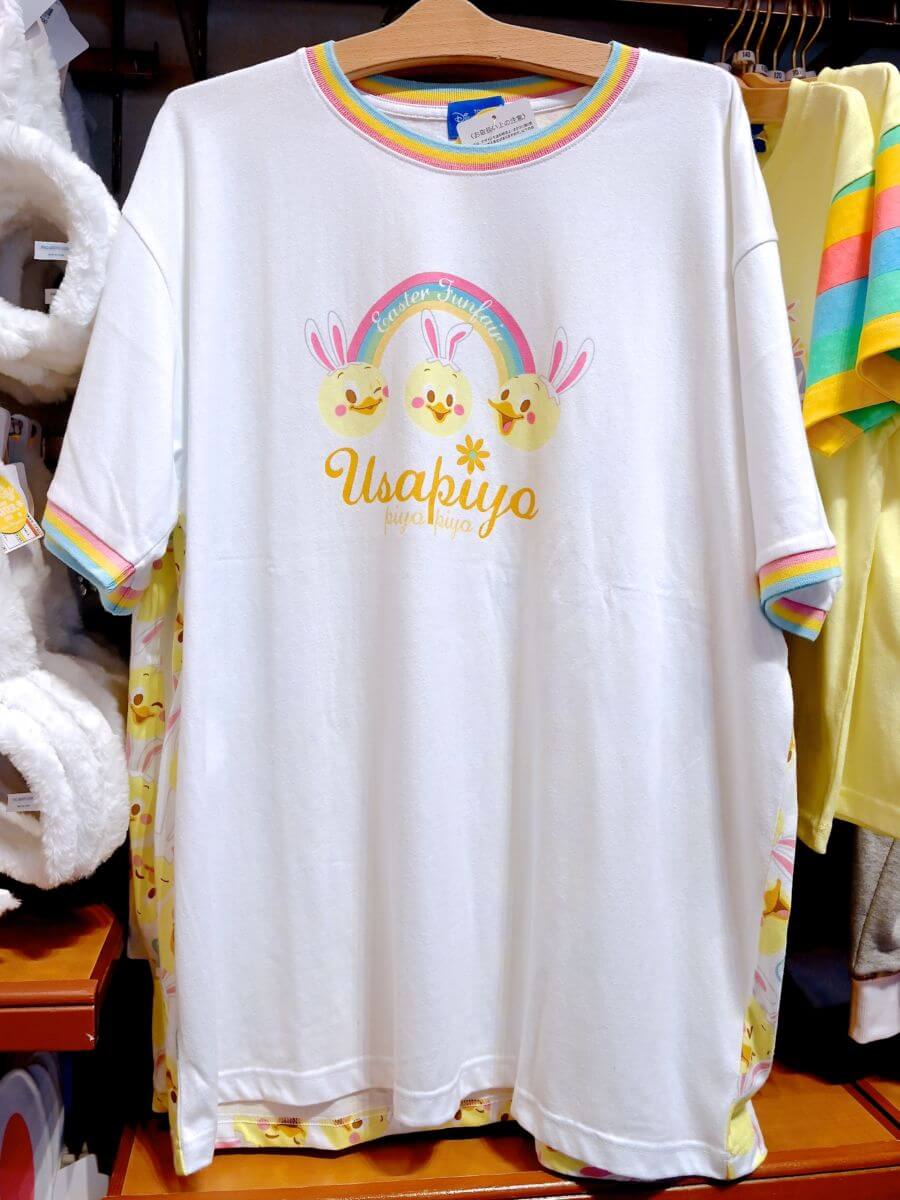 メインショー「Tip-Topイースター」のミッキーマウス、ミニーマウス、プルート、ドナルドダック、デイジーダック、グーフィー、チップ、デール、うさピヨがデザインされたTシャツ。