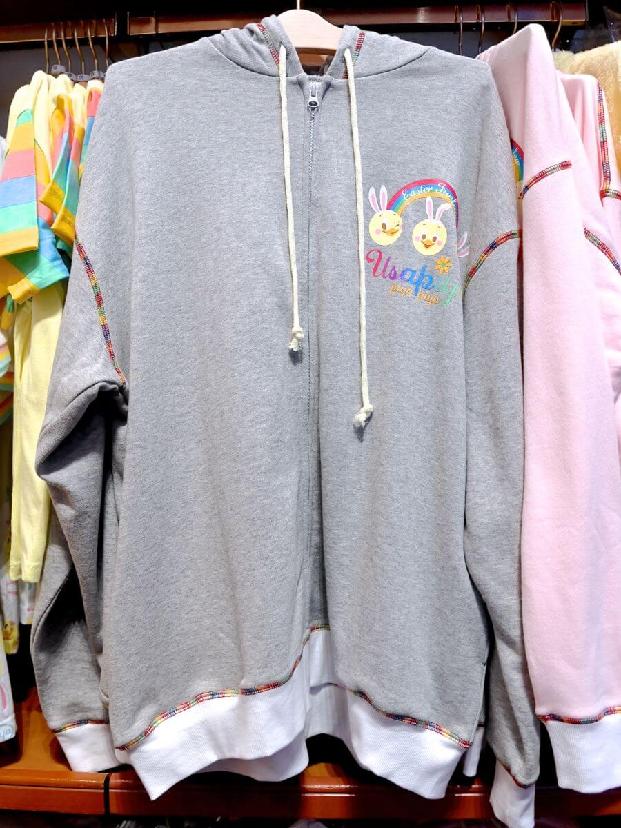 グレーのうさピヨデザインパーカー。