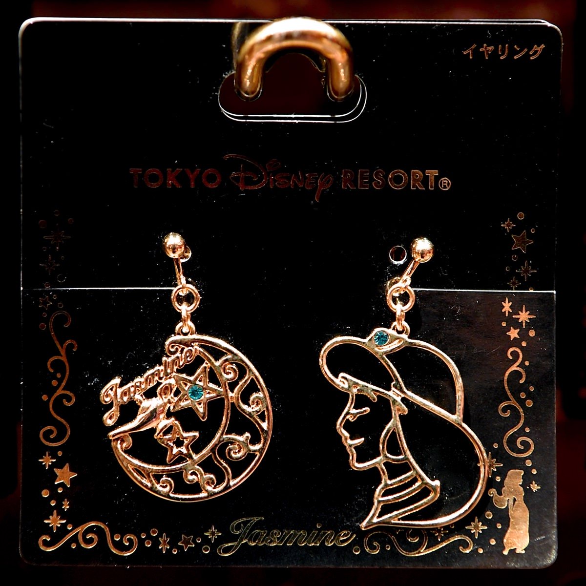 『アラジン』のディズニープリンセス、ジャスミンの横顔と月、星、魔法のランプをデザインしたイヤリング。