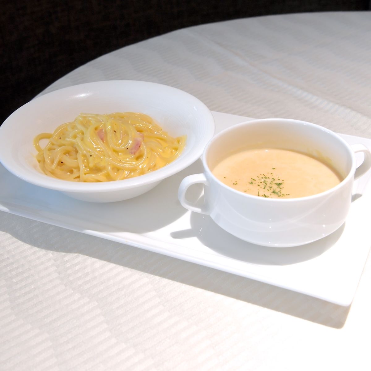 まろやかなカルボナーラとコーンスープ。