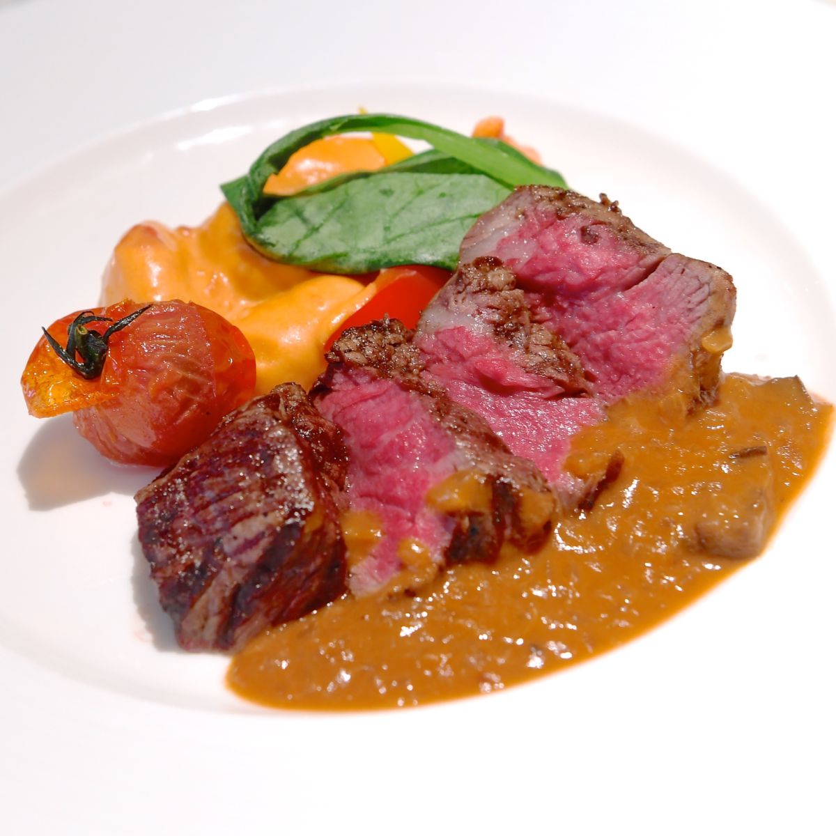 - 牛フィレ肉のグリル オニオンソース ポテトニョッキと温野菜