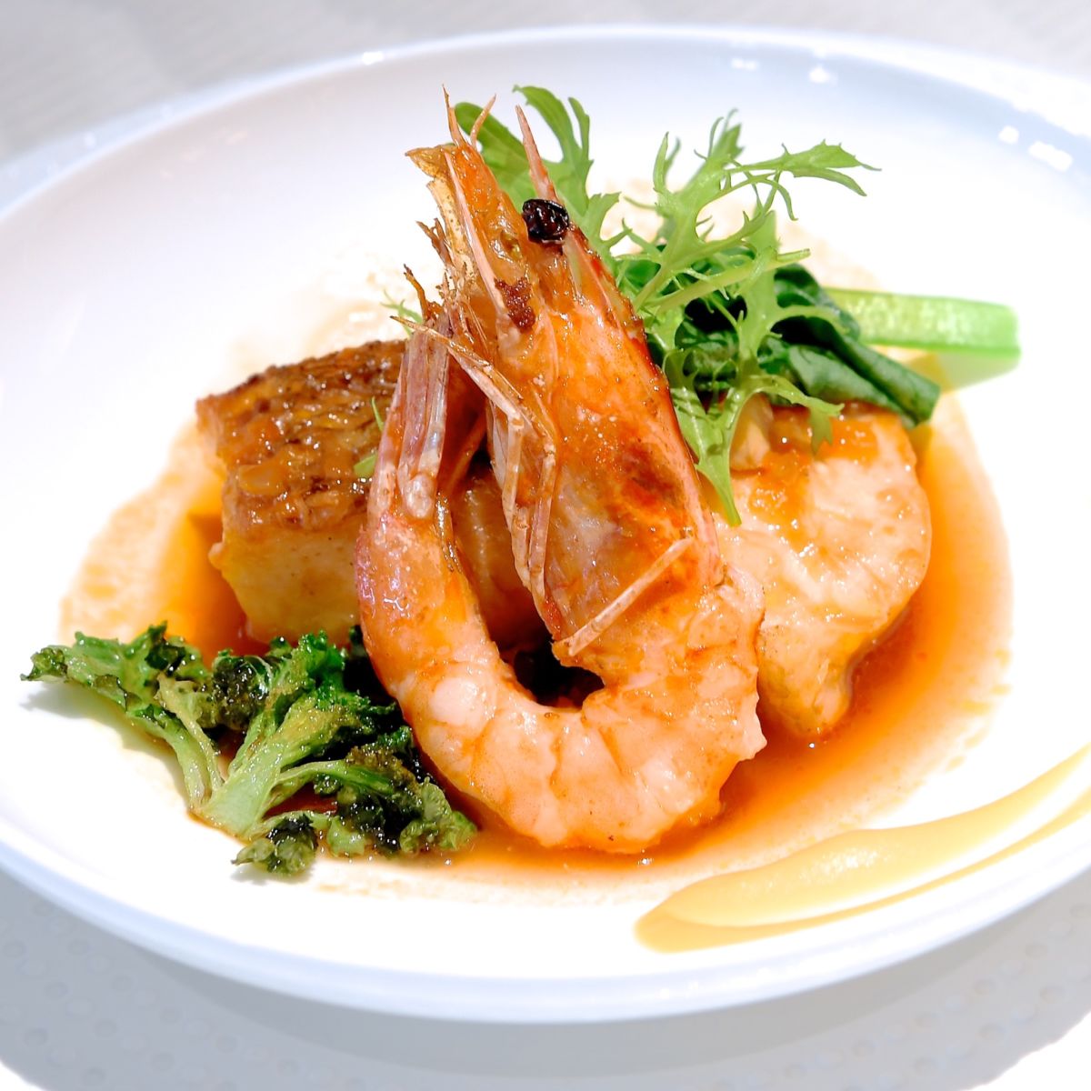 メインは鯛とスズキ、天使の海老の煮込み。
