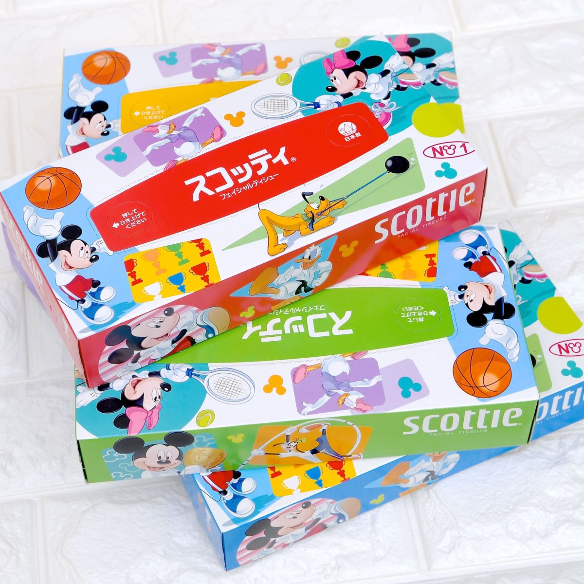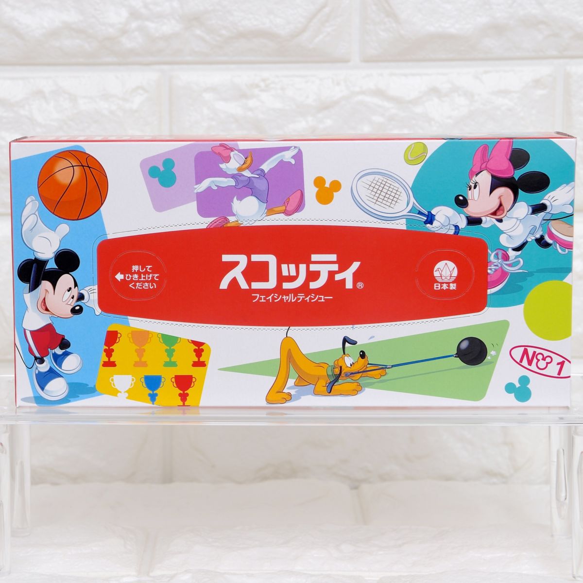 そんなクレシアのスコッティからスポーツをするミッキーマウスたちがデザインされたティッシュボックスが販売中!