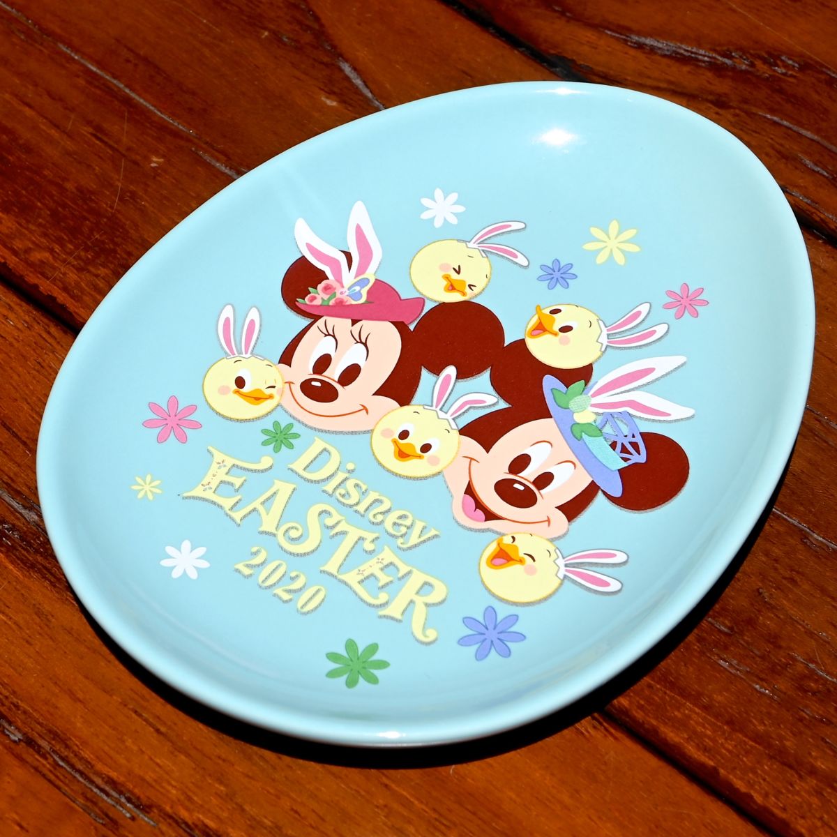 イースターらしく、たまご形のスーベニアプレートには、うさピヨたちに囲まれたミッキーマウスとミニーマウス。