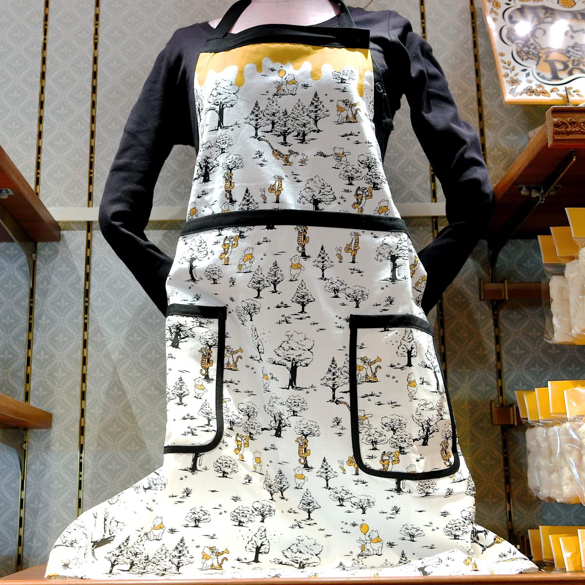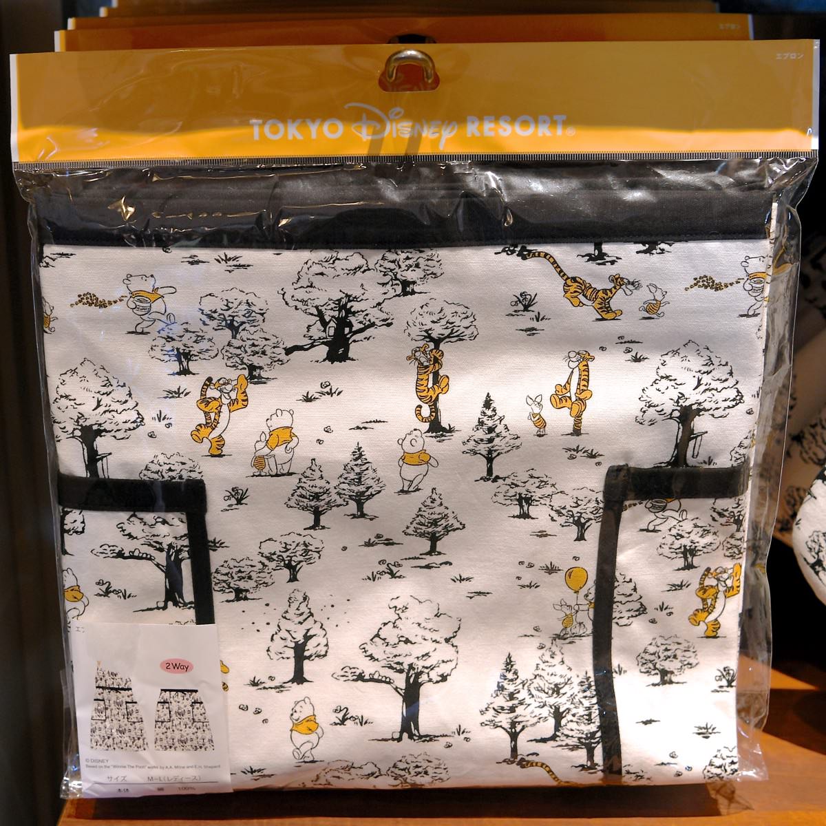 100エーカーの森が全面にデザインされたくまのプーさんのエプロン。