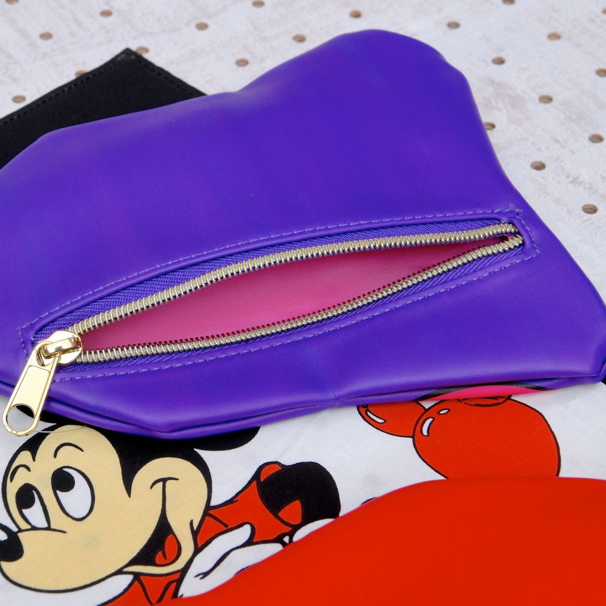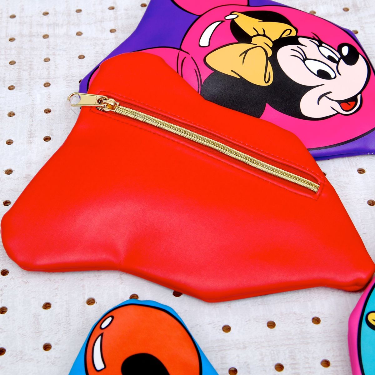 柔らかな質感のポーチに懐かしい雰囲気がかわいいミッキーマウスたちのお顔をデザイン!
