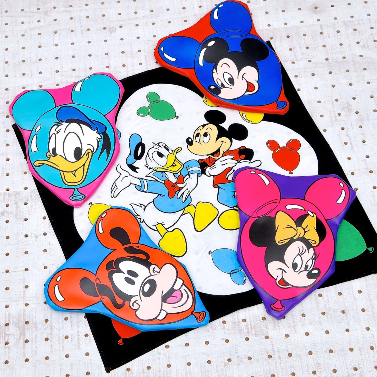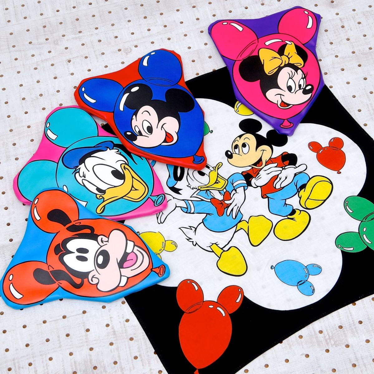 人気のミッキーバルーンにレトロかわいいミッキーマウス、ミニーマウス、ドナルドダック、グーフィーをデザインしたあざやかなポーチ4種が販売中!