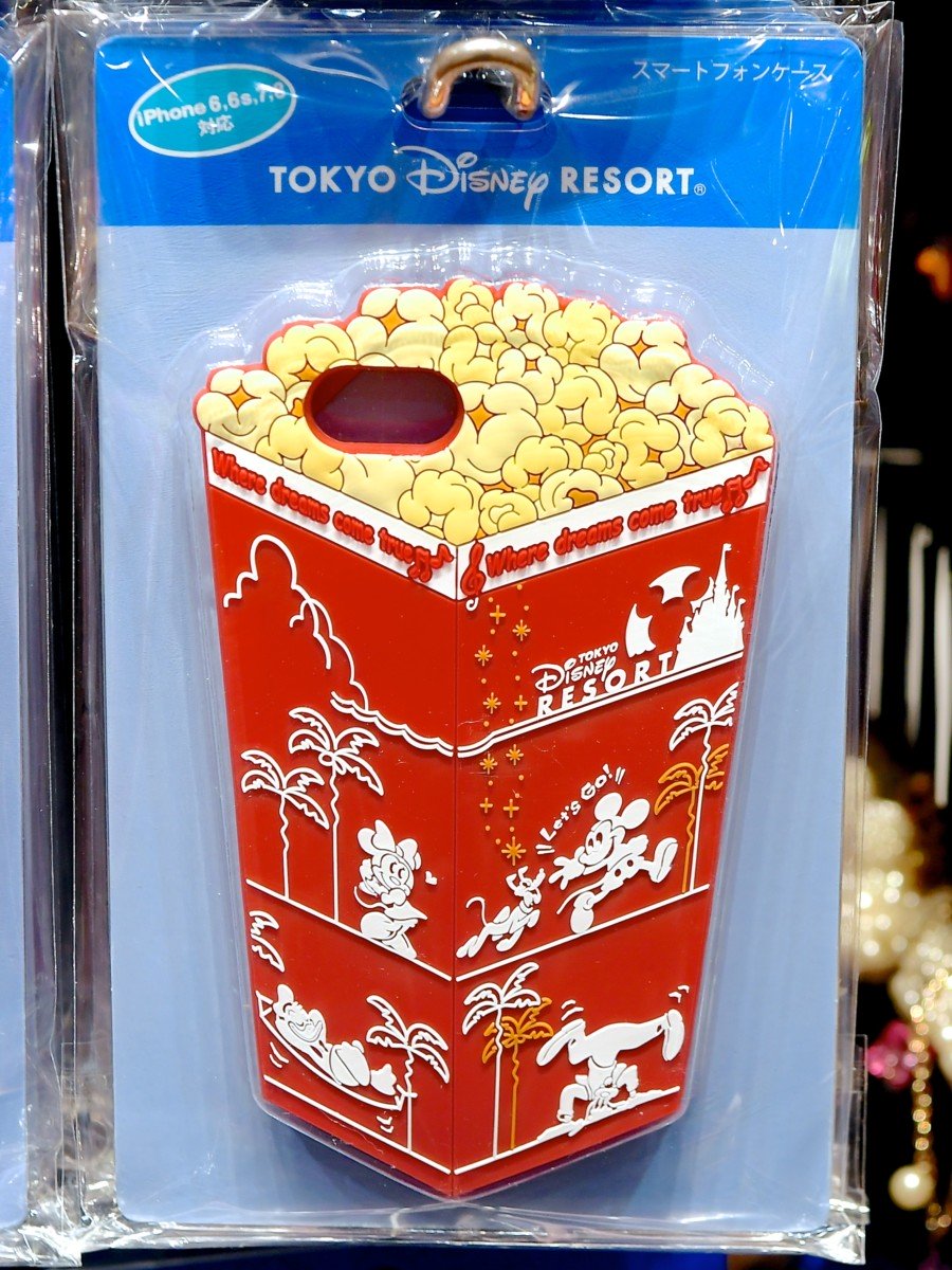Where dreams come true♪TOKYO DISNEY RESORT、ミッキーマウス、ミニーマウス、プルート、ドナルドダック、グーフィーがデザインされたレギュラーボックス入りのポップコーンダイカットデザインのスマートフォンケース☆