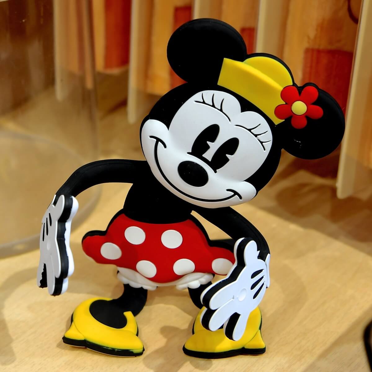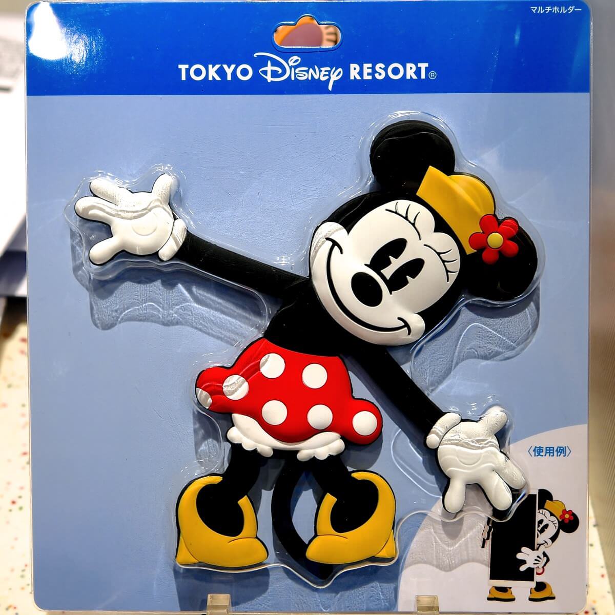 お花の付いた帽子、ドット柄のスカートを着たクラシックなミニーマウスのマルチホルダー。