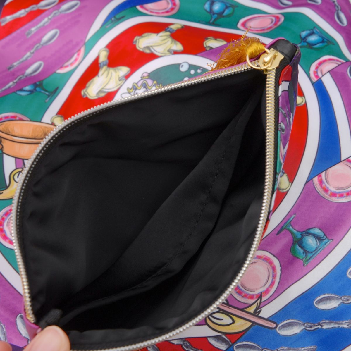 スカーフ風アートのフラットポーチも販売。
