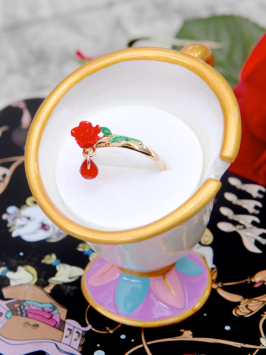 リングホルダーには、物語のキーアイテム“魔法のバラ”モチーフの指輪がセットされています☆