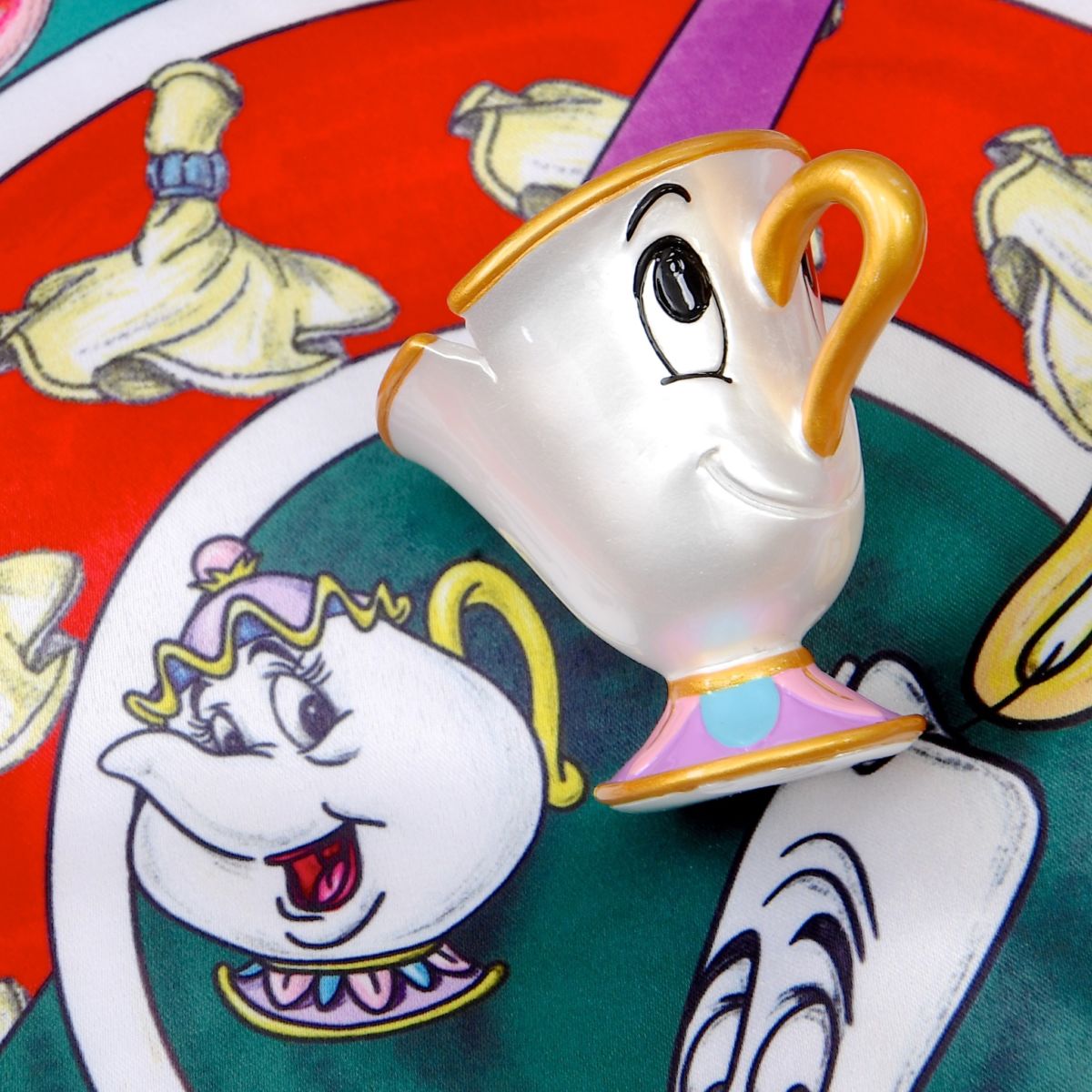 ポット夫人を見上げるような上目づかいがかわいいチップのリングホルダー。