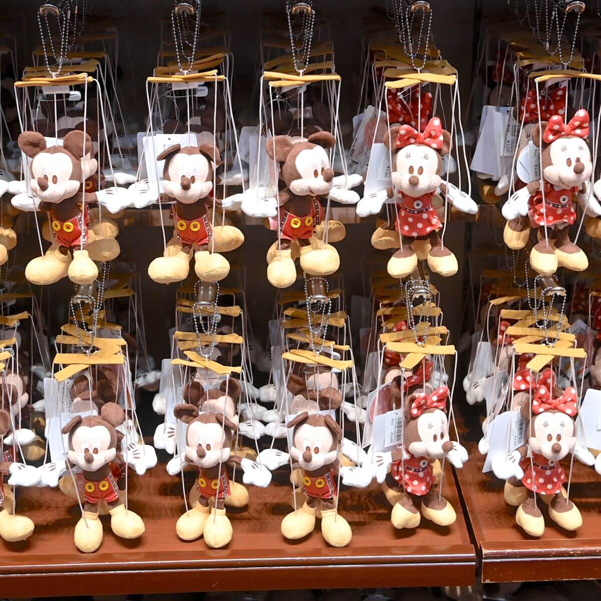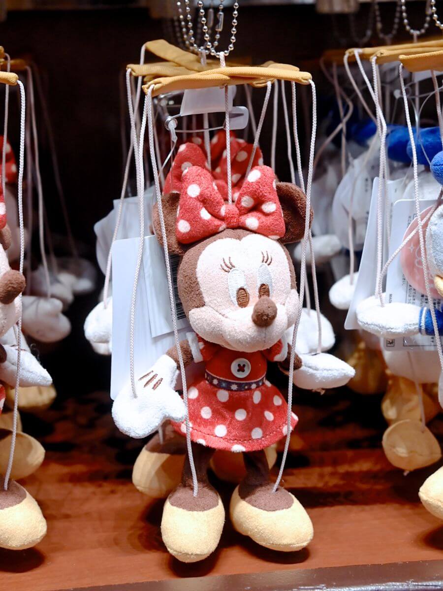 操り人形をイメージしたミニーマウスぬいぐるみバッジ。