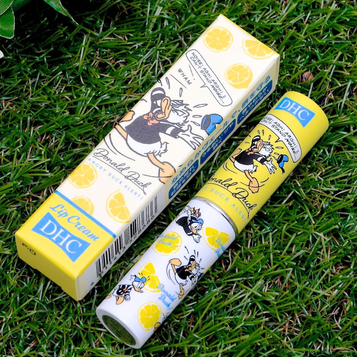ドナルドダックは、イエロー×ホワイトにレモン、動き回るドナルドをデザインしたリップクリーム。