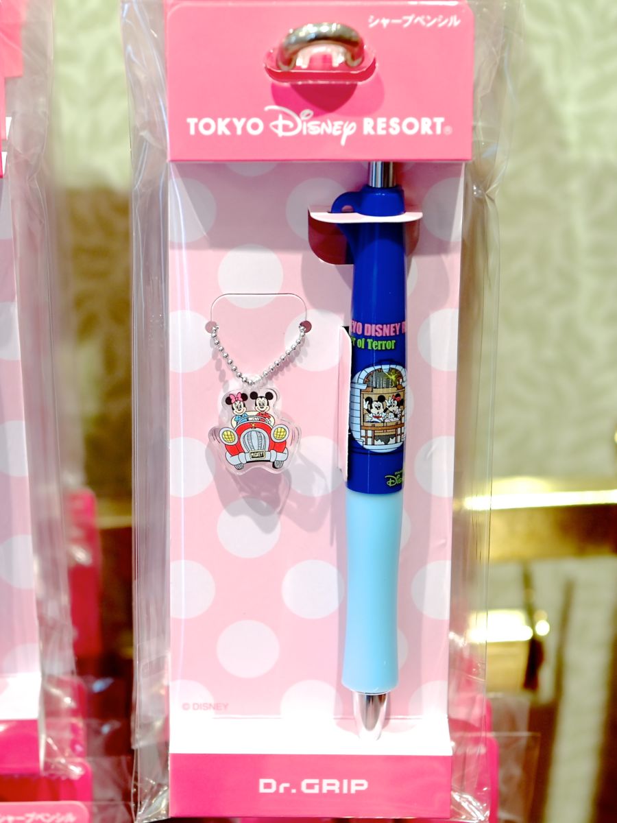 「タワー・オブ・テラー」に乗るミッキー&ミニーがデザインされたシャープペンシル。