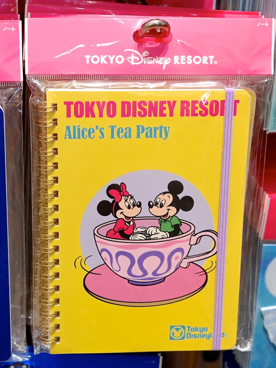 「アリスのティーパーティー」にのるミッキーマウスとミニーマウスがデザインされたノート。