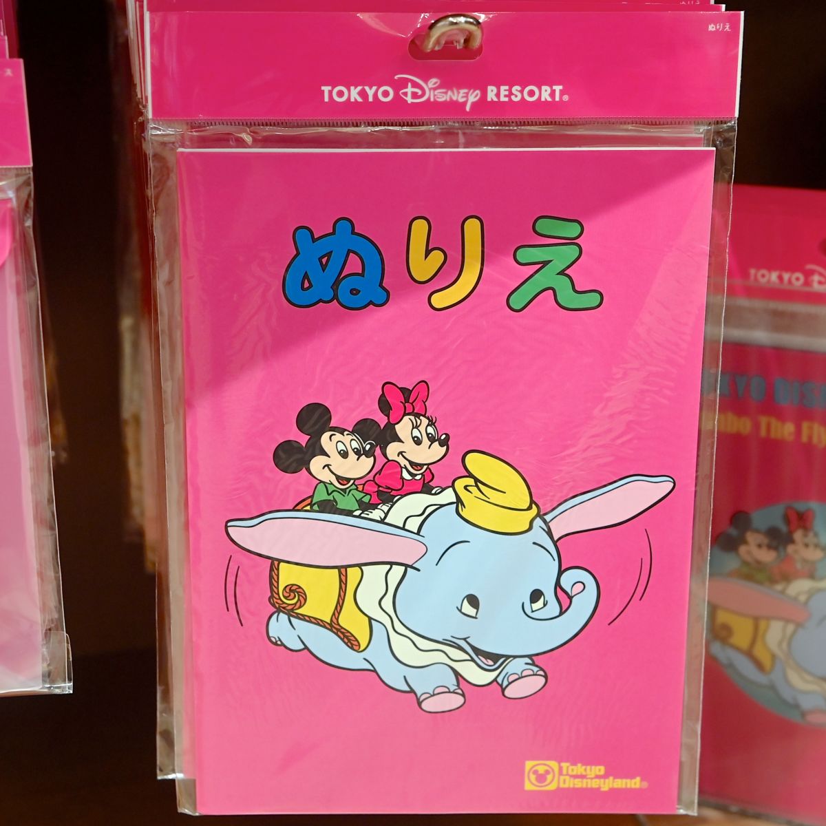 アトラクション「空飛ぶダンボ」に乗るミッキーマウスとミニーマウスがデザインされています。