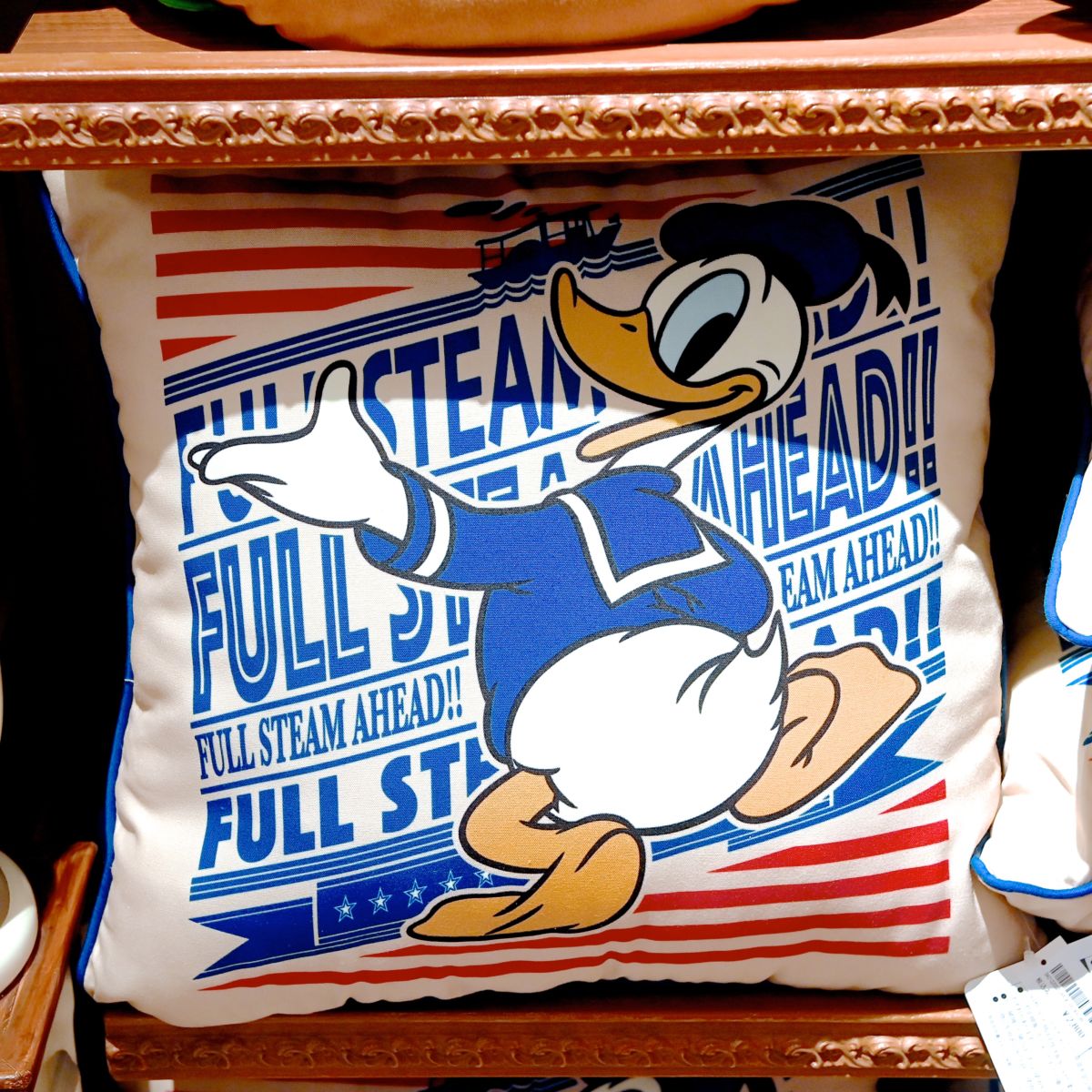 マリンテイストがオシャレなドナルドダックデザインのクッション。