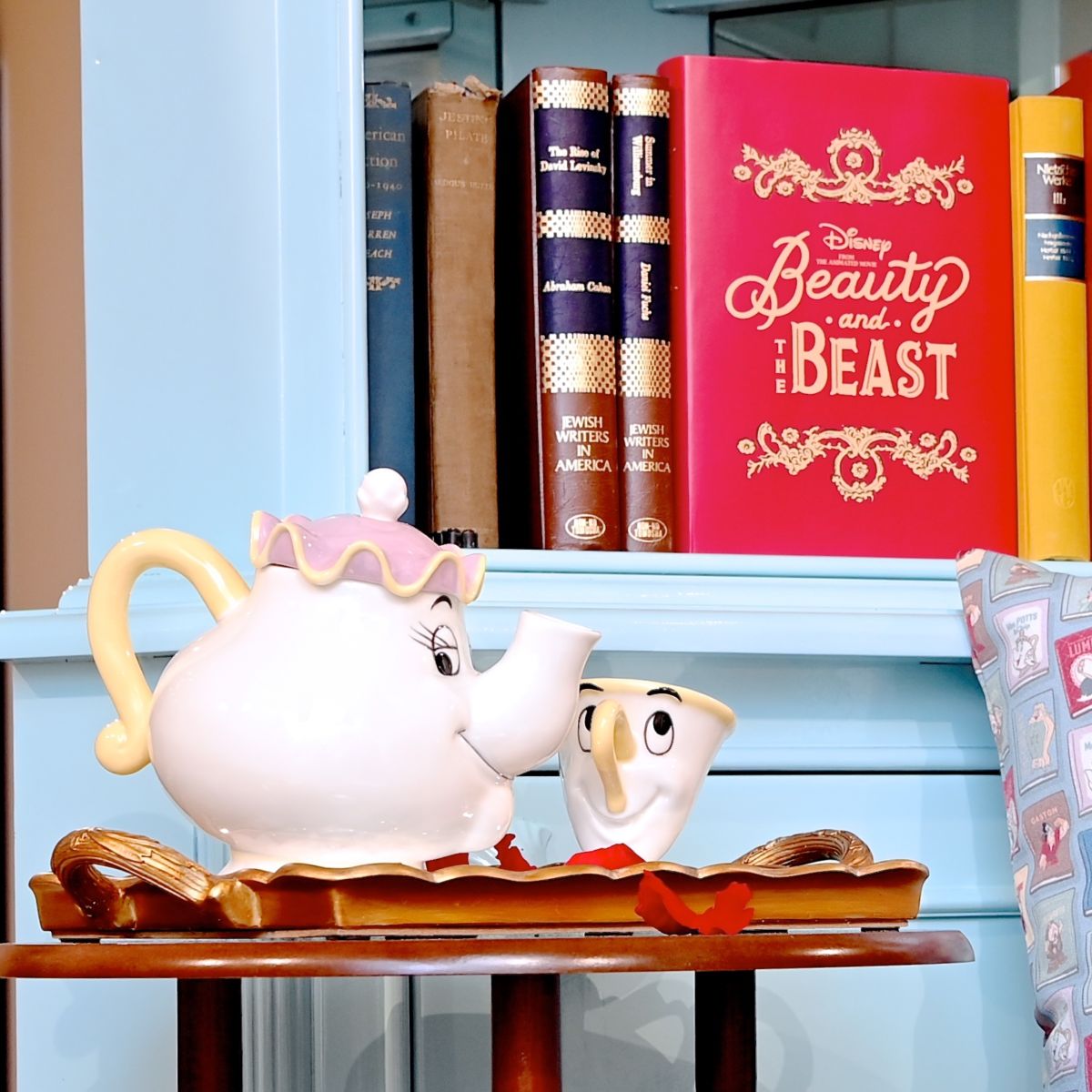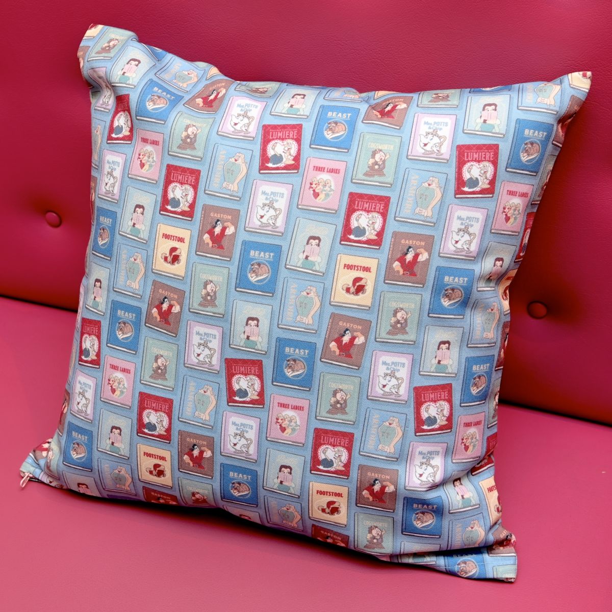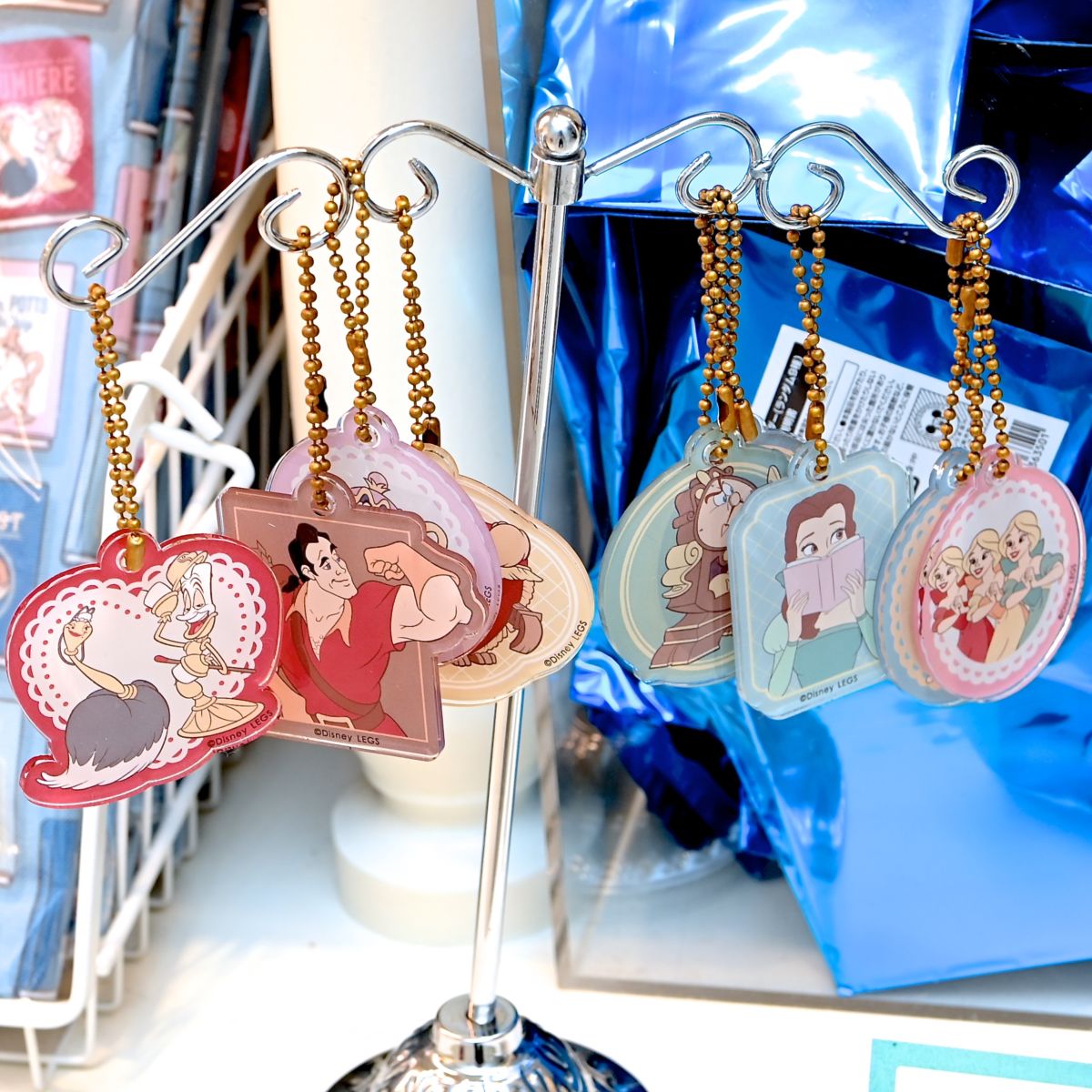 ベル、野獣、ガストン、3人娘、ポット夫人&チップ、コグスワース、ルミエール&フェザーダスター、ワードローブ、フットスツールがデザインされています。