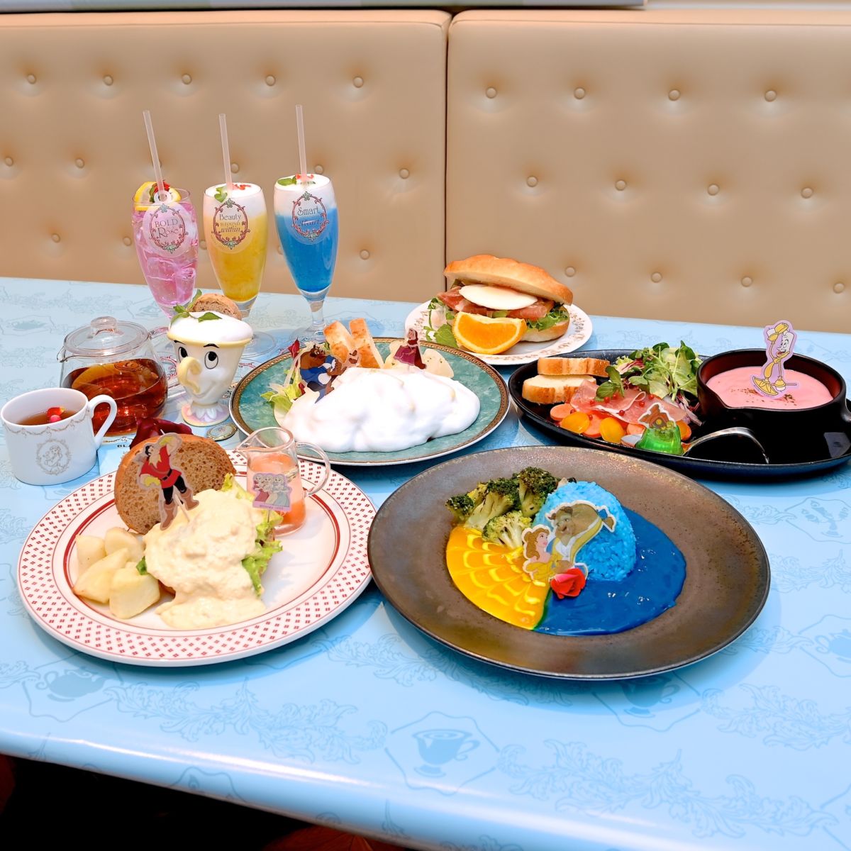 『美女と野獣』の人気キャラクターたちをモチーフにしたフードやドリンクメニュー。